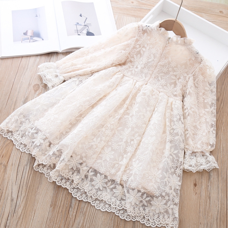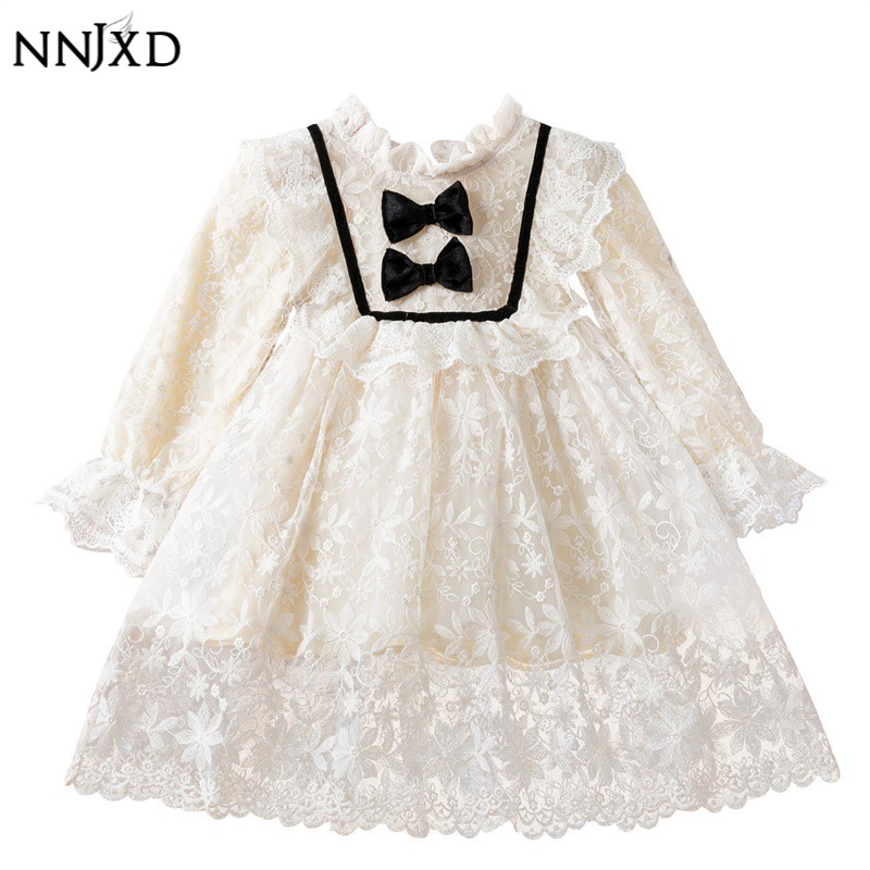 NNJXD Đầm ren thêu hoa tay dài mặc hàng ngày/ đi tiệc/ sinh nhật cho bé gái từ 3-8 tuổi