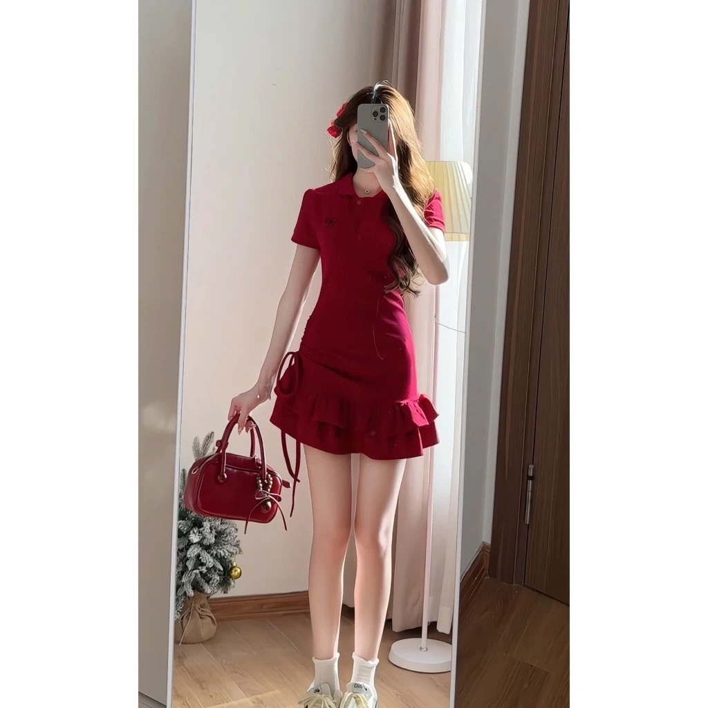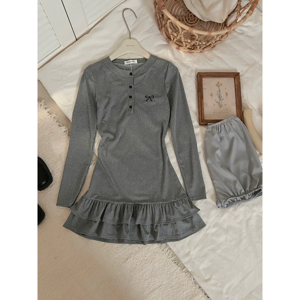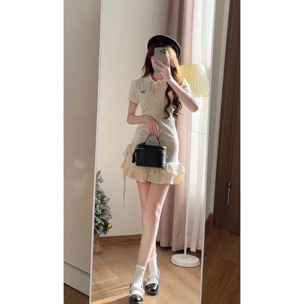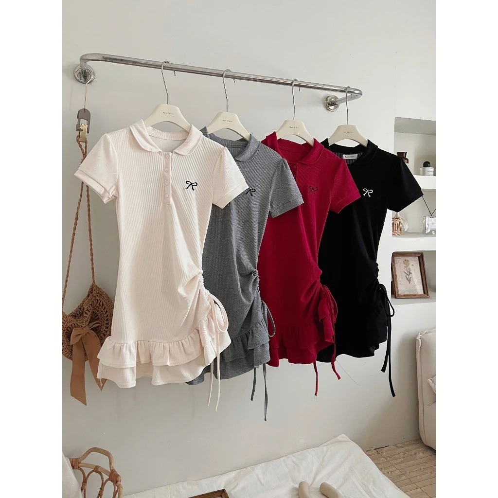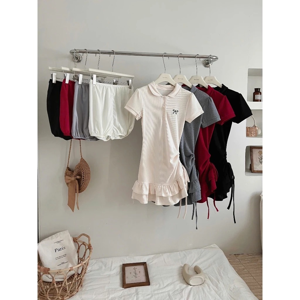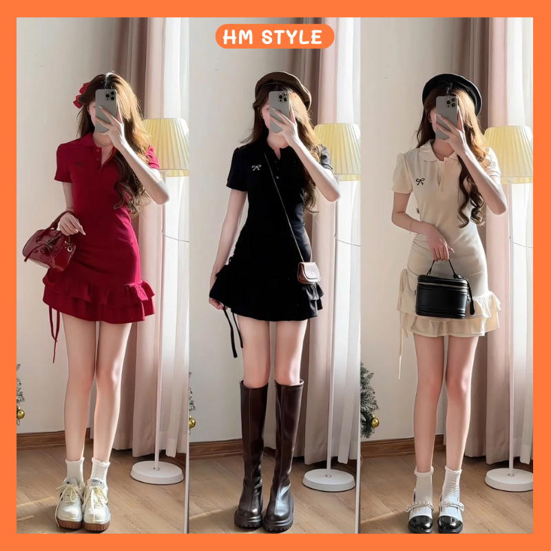 Váy xòe dáng ngắn thêu thêu nơ, đầm nữ body dây rút eo kèm quần bảo hộ HV87