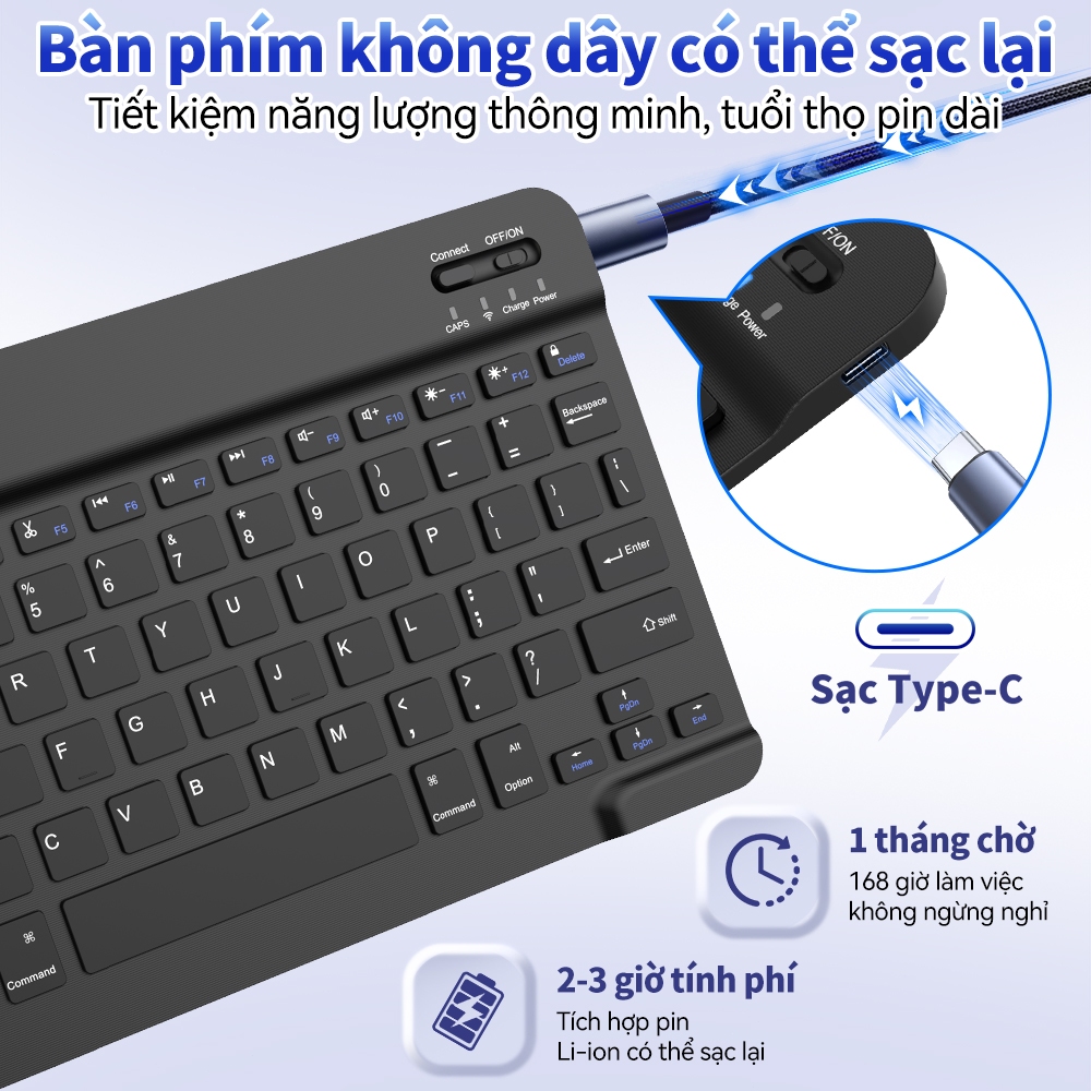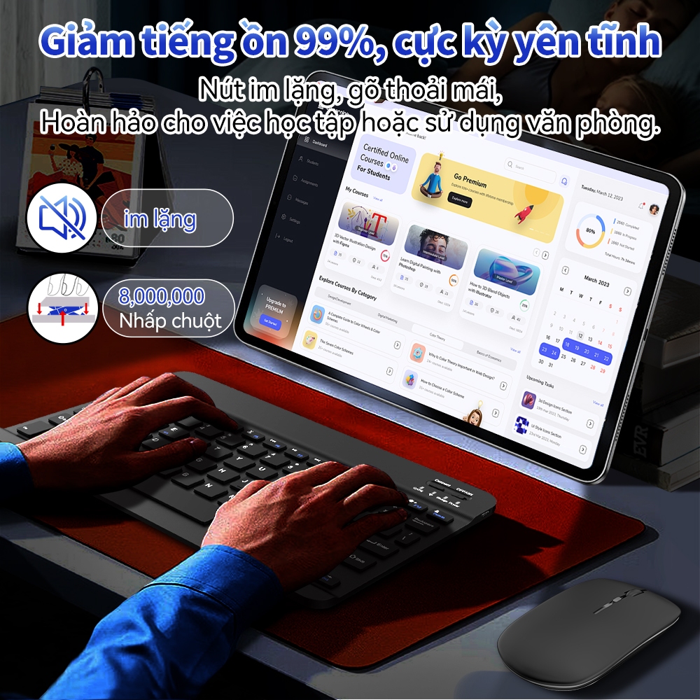 Bộ chuột bàn phím Bluetooth cho iPad Android iOS Máy tính bảng Bàn phím không dây 10 inch đầy màu sắc