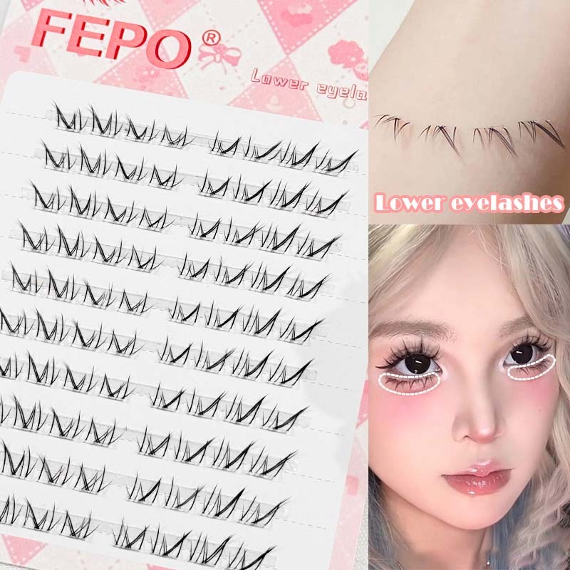 Fepo 10 hàng Lông mi giả dưới Cụm đơn EyeLash Lông mi dưới tự nhiên 3-6mm