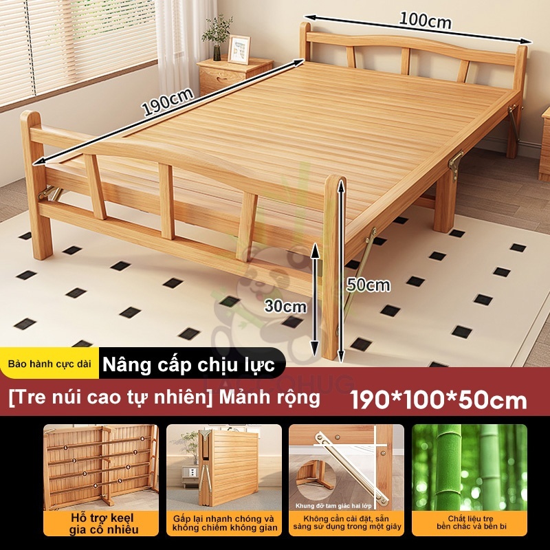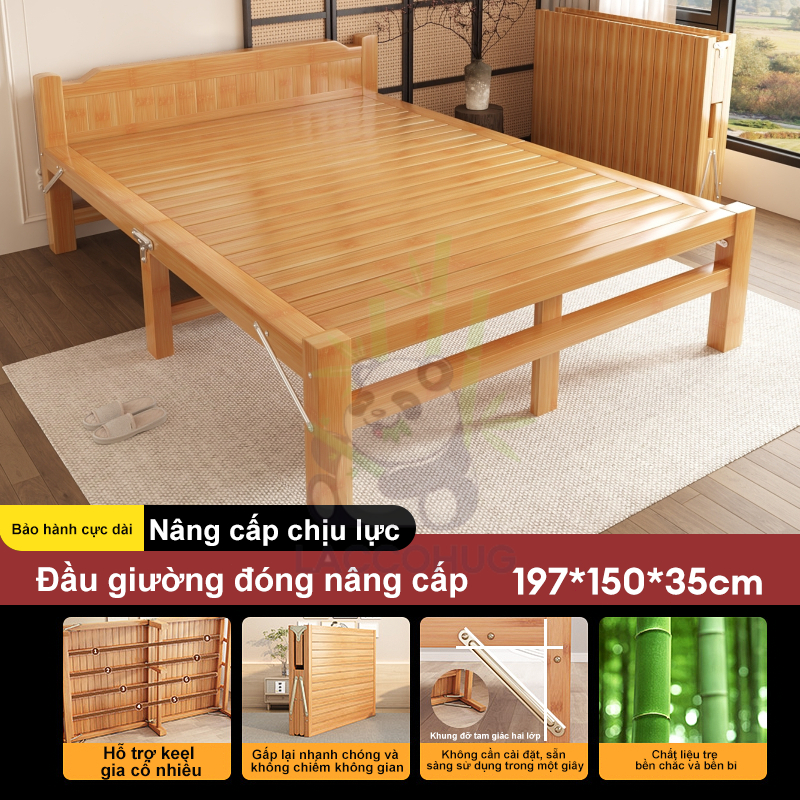 LACCOHUG Giường Gấp Bằng Tre Không Cần Lắp Ráp thiết Kế Gấp Gọn tiện Dụng Cho Mọi Không Gian