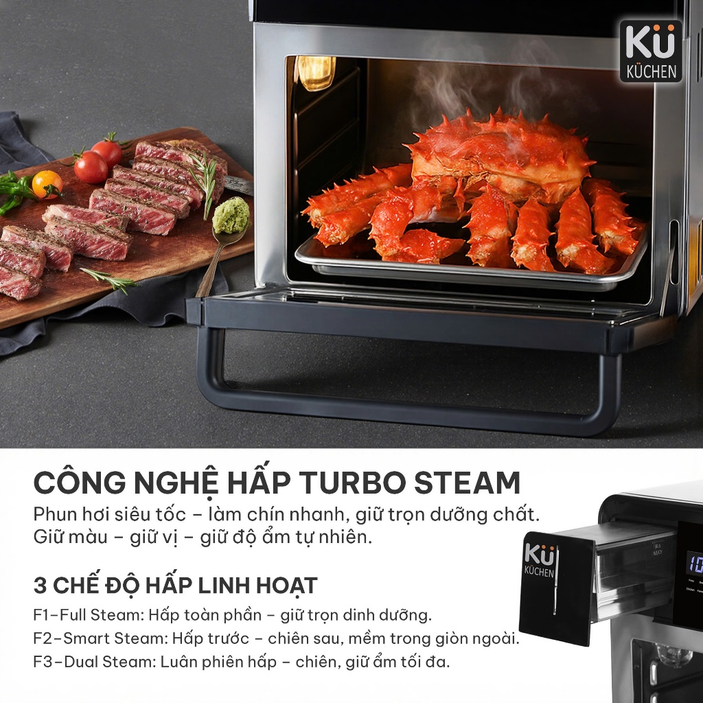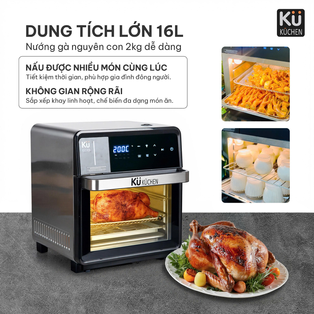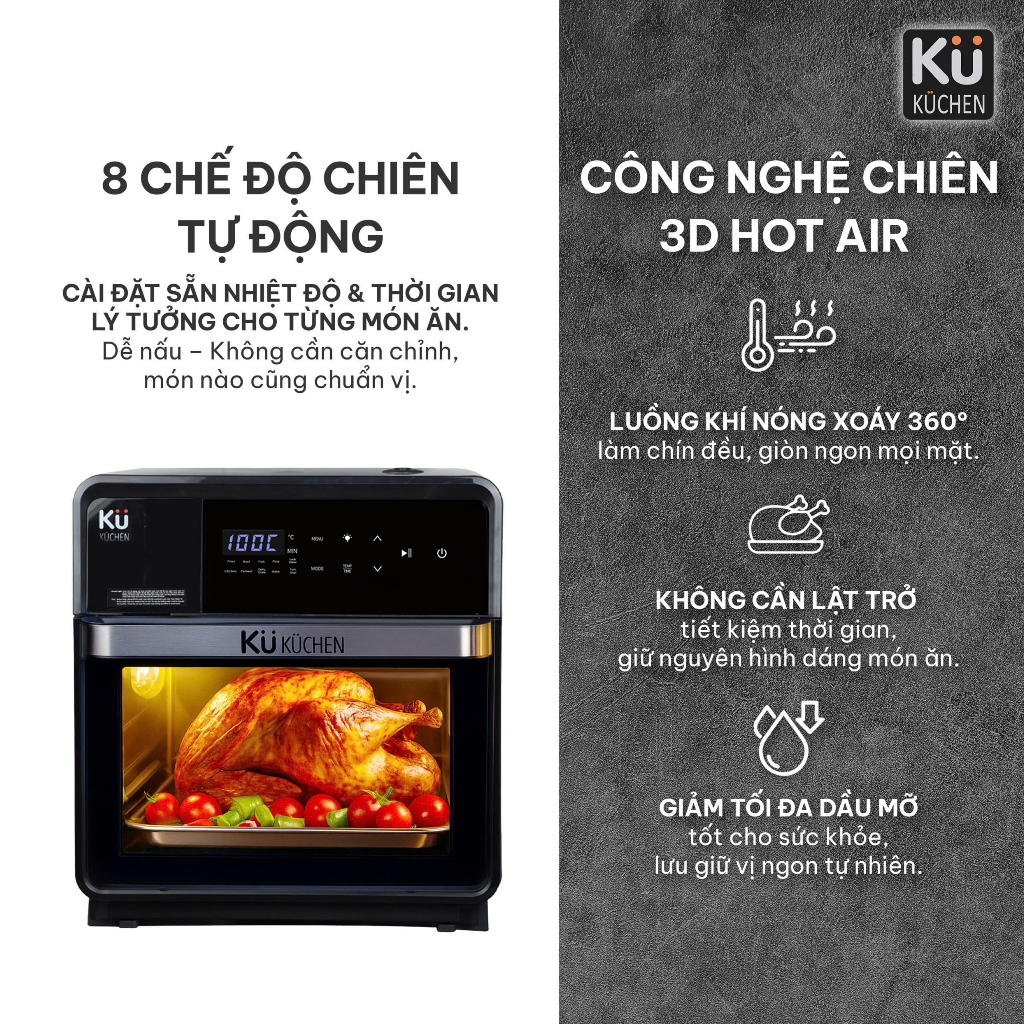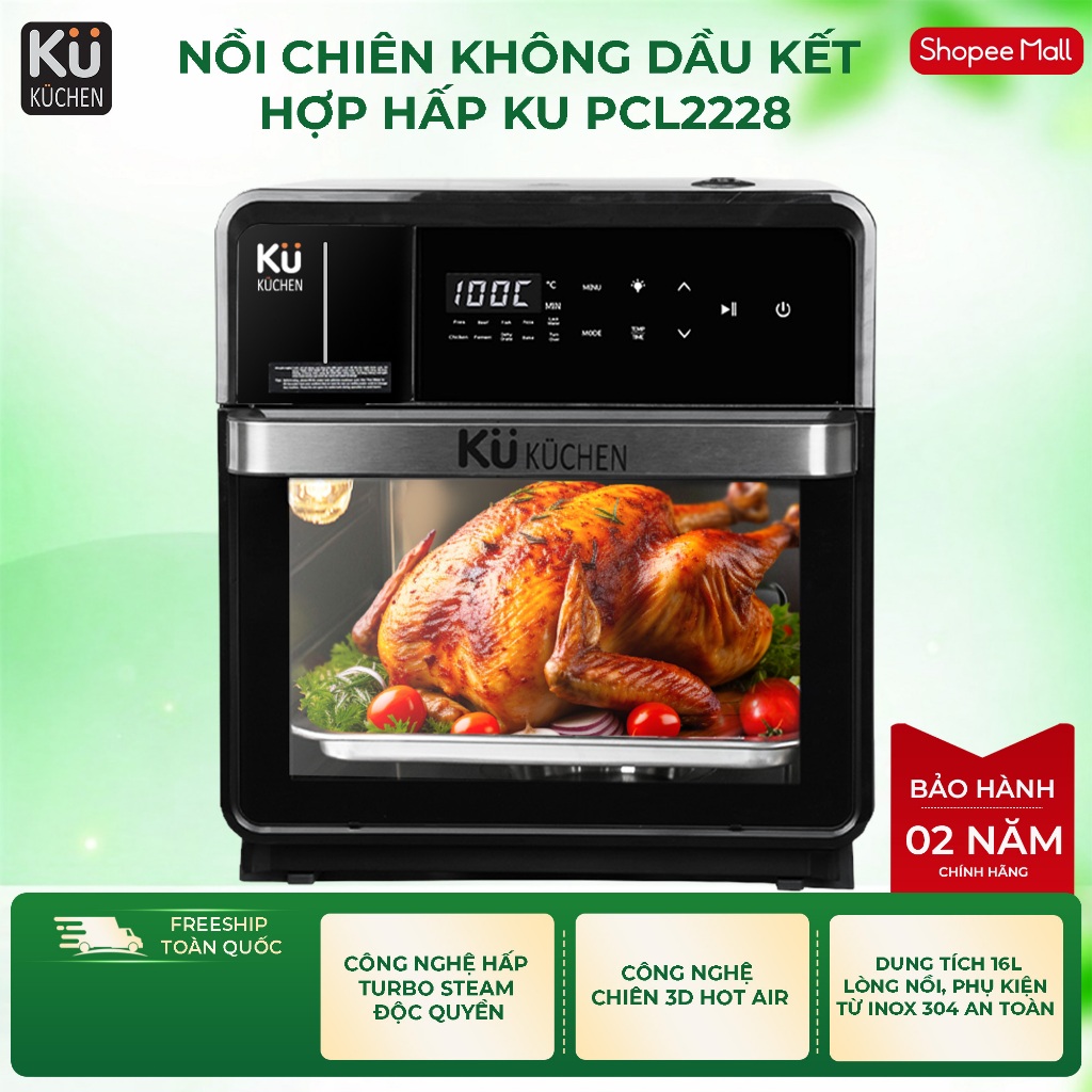 Nồi chiên không dầu kết hợp hấp KUCHEN KU PCL2228 16L bảo hành 24 tháng l Sẵn phụ kiện thay thế