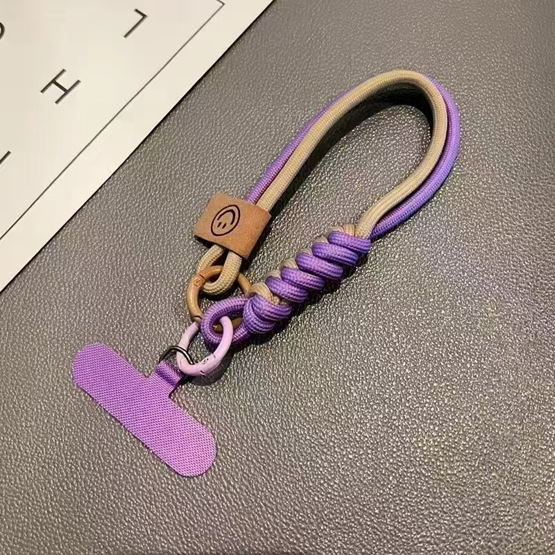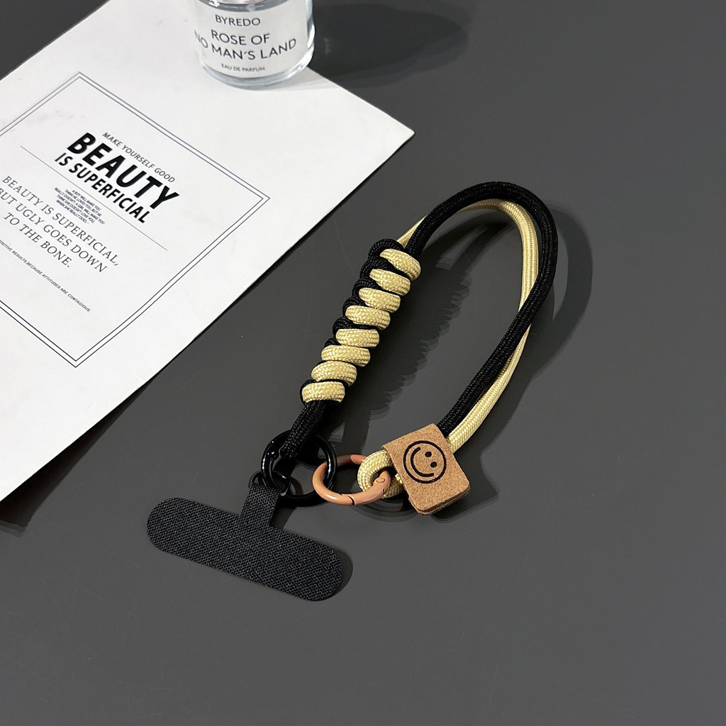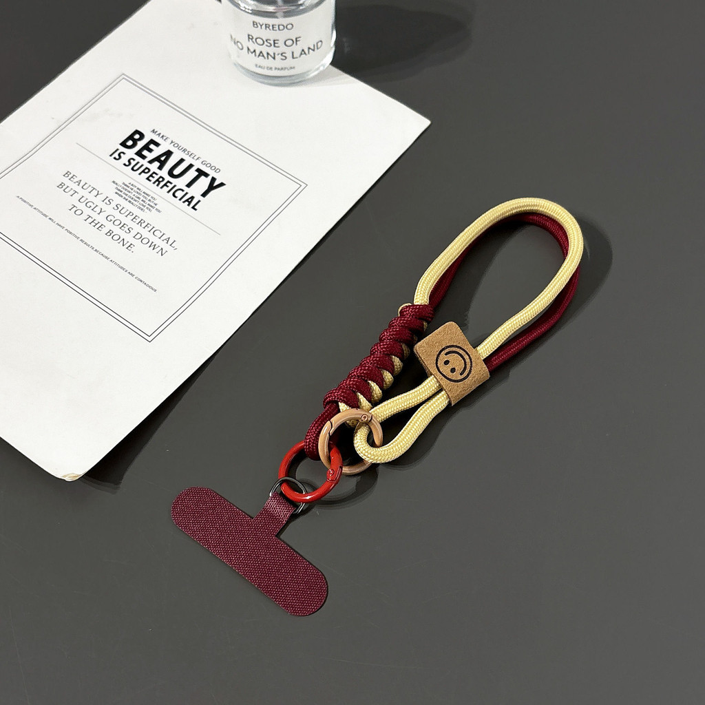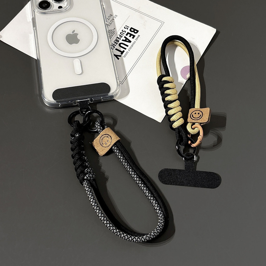 Dây đeo cổ tay hai màu kiểu Anh: Dây đeo điện thoại cotton bện, dây charm chống trượt có chức năng móc khóa