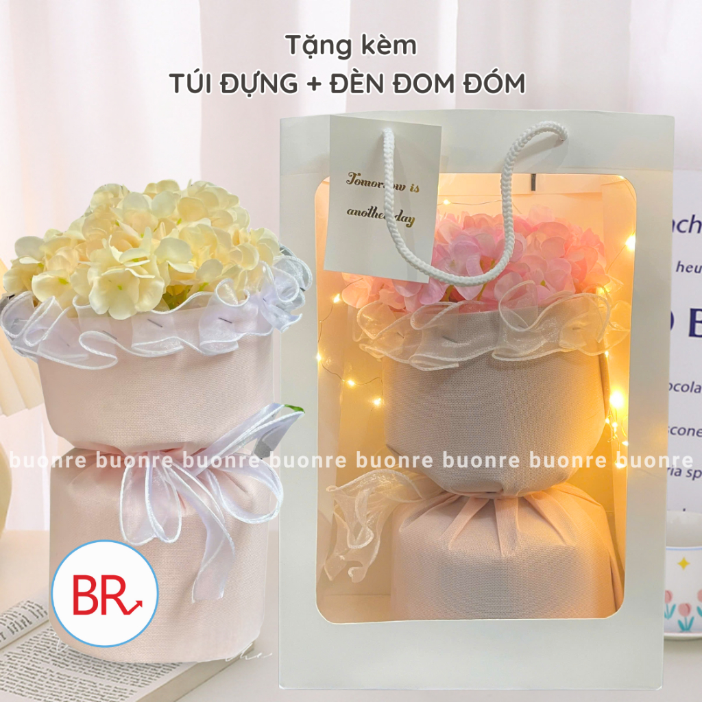 [Quà Tặng 14/3] Bó hoa cẩm tú cầu to tặng kèm túi đựng quà tặng người yêu, sinh nhật, bó hoa giả xinh xắn 03026-1