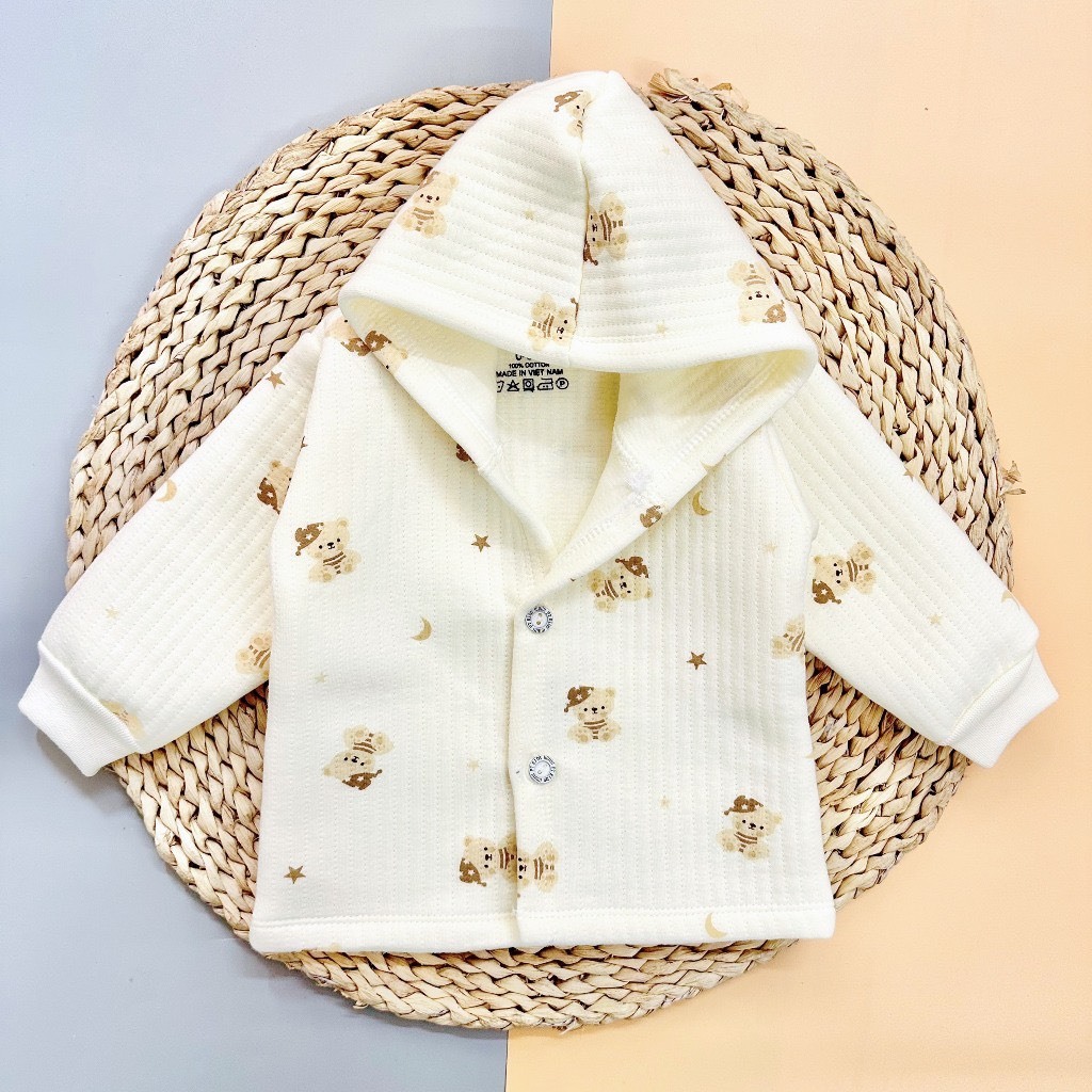 (SALE LỚN)Áo Khoác Nỉ xốp Có Mũ Nhiều Hình Dễ Thương, Ấm Áp Cho Bé Từ 3-9kg