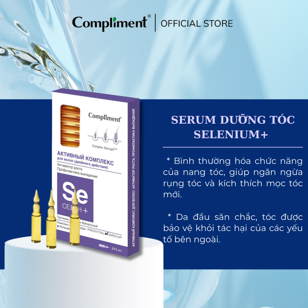 Combo xịt và serum dưỡng tóc Compliment kích thích mọc tóc hoạt động kép SELENIUM+ 150ml + 8*5ml