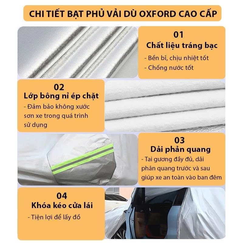 [TẶNG BÚA THOÁT HIỂM] Bạt phủ ô tô xe hơi vải dù oxford cao cấp 3 lớp tráng bạc bền đẹp chống nắng mưa hàng loại 1 V8