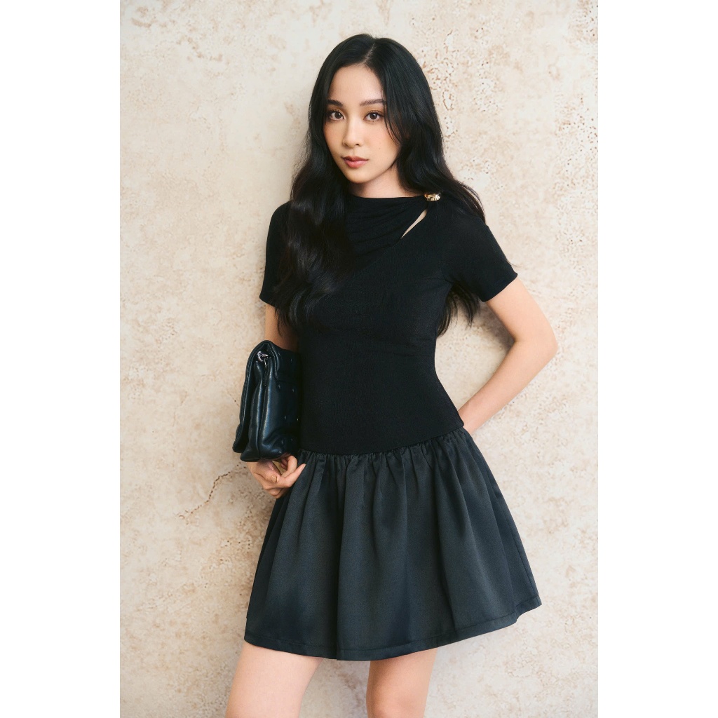 Váy Nữ Cộc Tay Dáng Ngắn Đính Vai SHEMODA CUT- OUT FLARE DRESS Nữ Tính Thanh Lịch