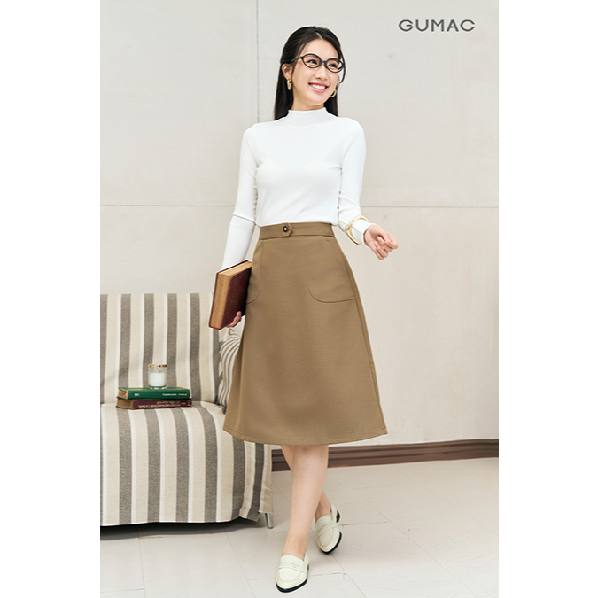 Chân váy nữ dáng A xòe GUMAC cơ bản có túi đắp kèm nút trang trí chất tuyết mưa đứng form LVE1202