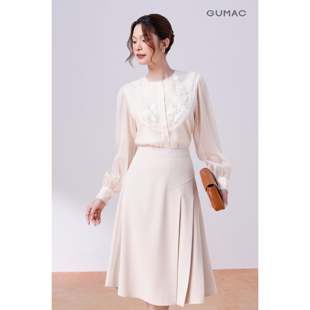 Áo sơ mi nữ tay dài GUMAC chất liệu voan tơ phối ren nữ tính công sở thanh lịch LAF0901