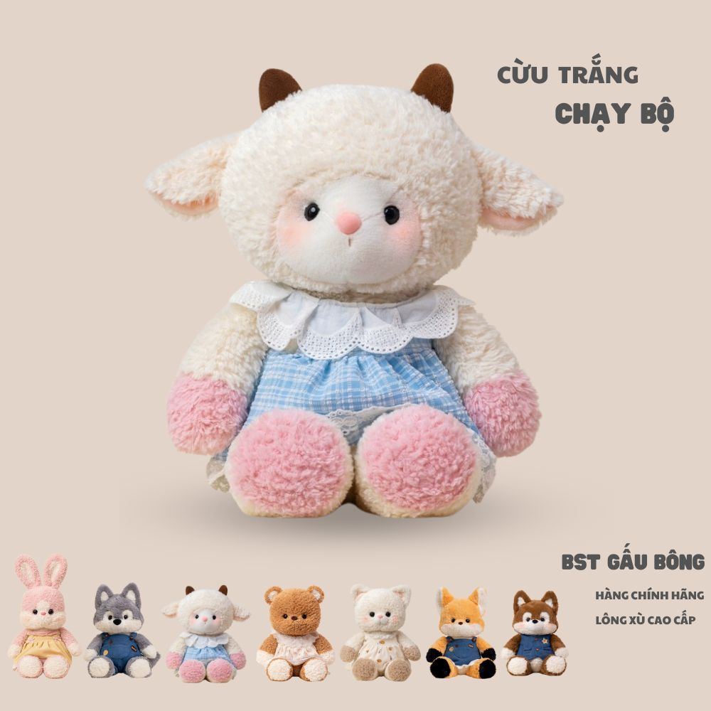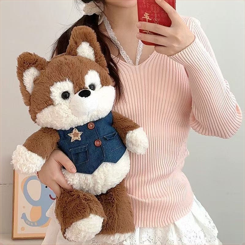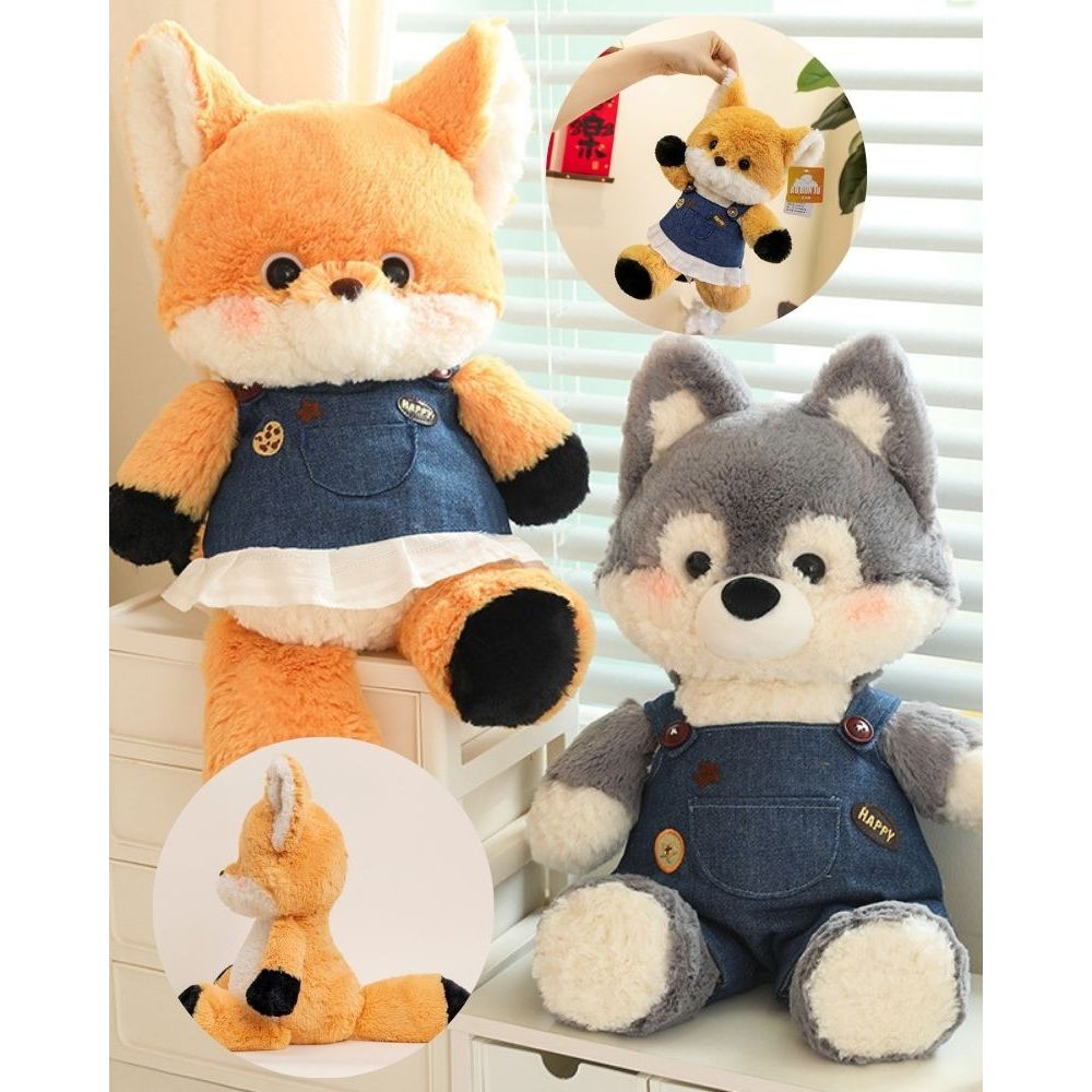 Gấu bông cáo cam chó husky chạy bộ dễ thương, Cáo đoàn gia hứa mặc yếm bò chất liệu lông cừu cao cấp