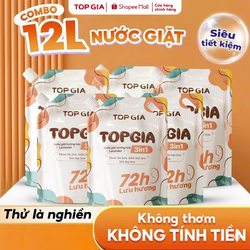 Combo Nước Giặt Xả 3in1 TopGia Hương Lavender Dịu Nhẹ Túi 2L, An Toàn Cho Da Lưu Hương 72H