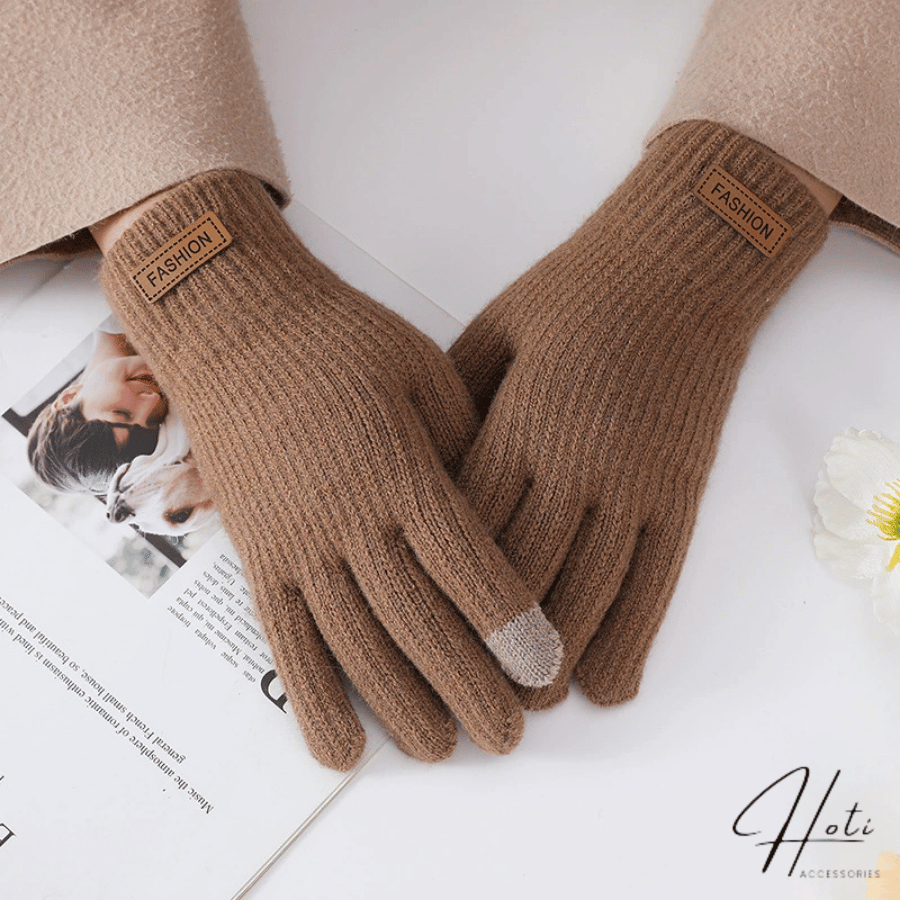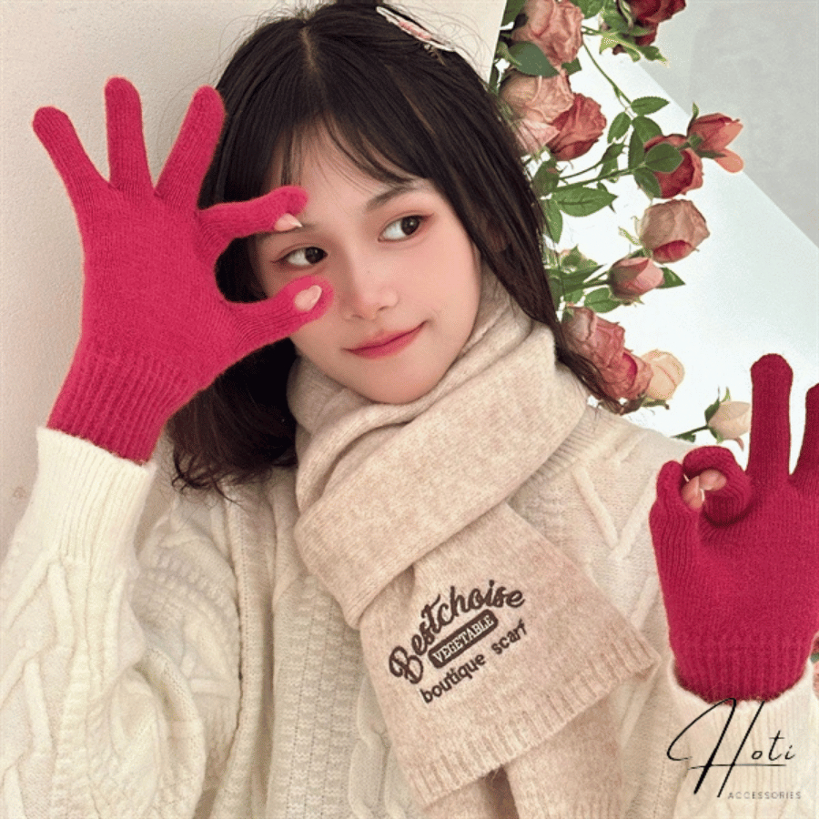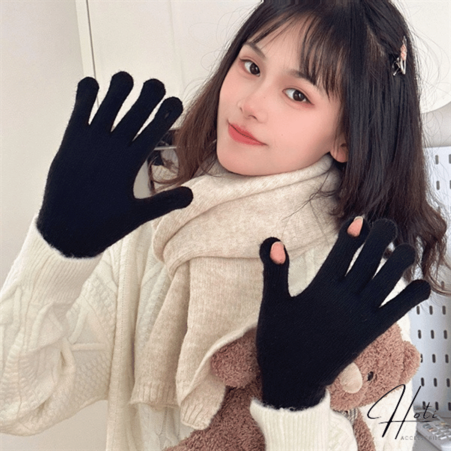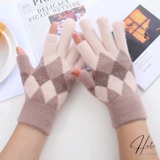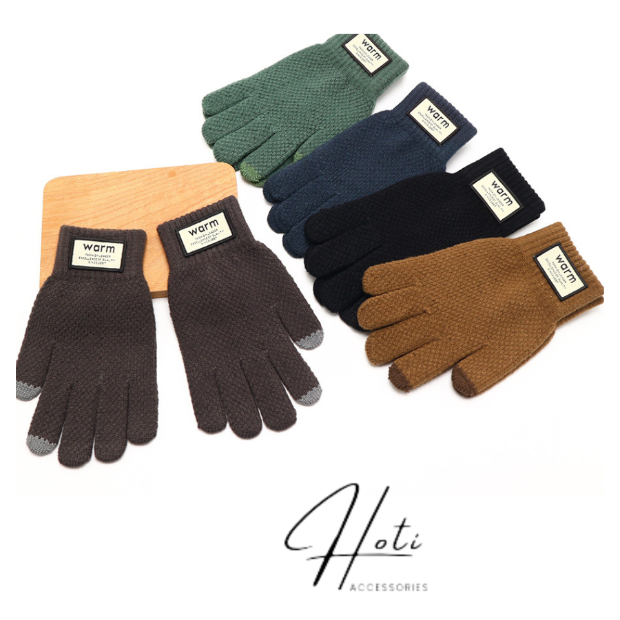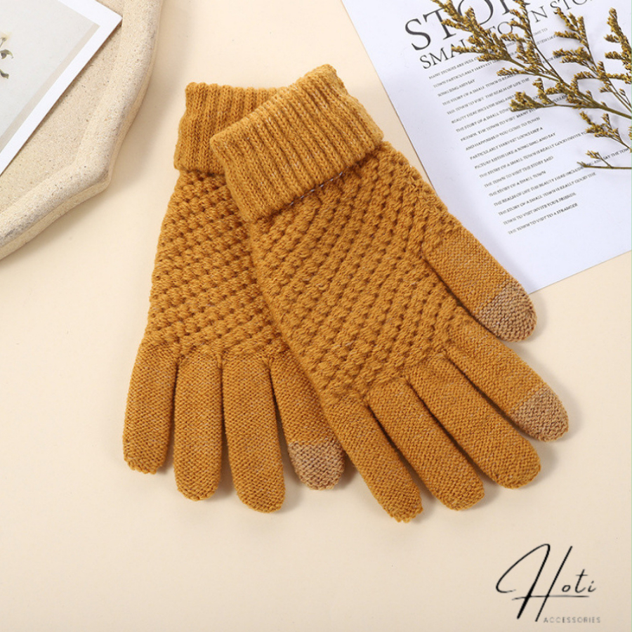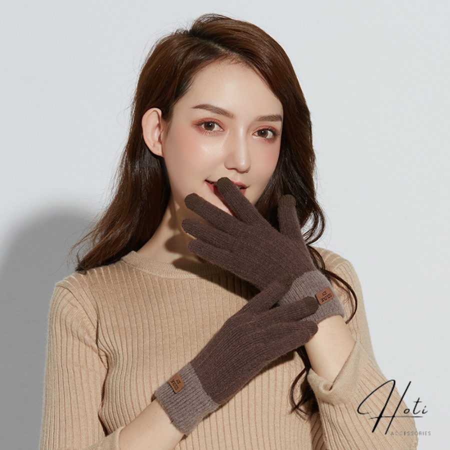 Bao tay lót lông Unisex, Găng Tay Len Dệt Kim Dày Giữ Ấm Thiết Kế Ngón Tay Chạm Màn Hình Cảm Ứng -HOTI- GT029