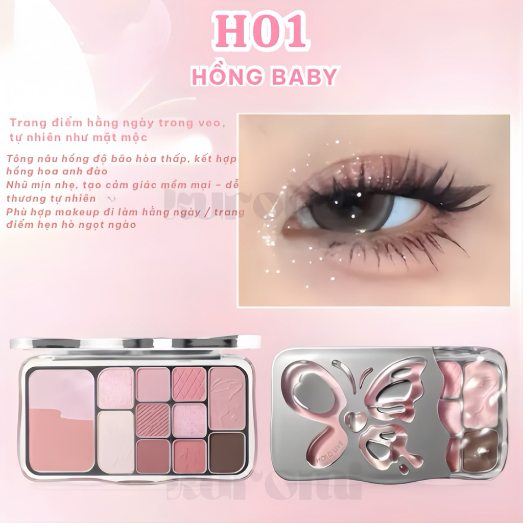 (TẶNG CỌ) HOLD LIVE Bảng Phấn Mắt Má Kèm Tạo Khối 12 Màu 4in1 Hold Live Mist Butterfly Shadow Hồng Lạnh HL792 Kuromi