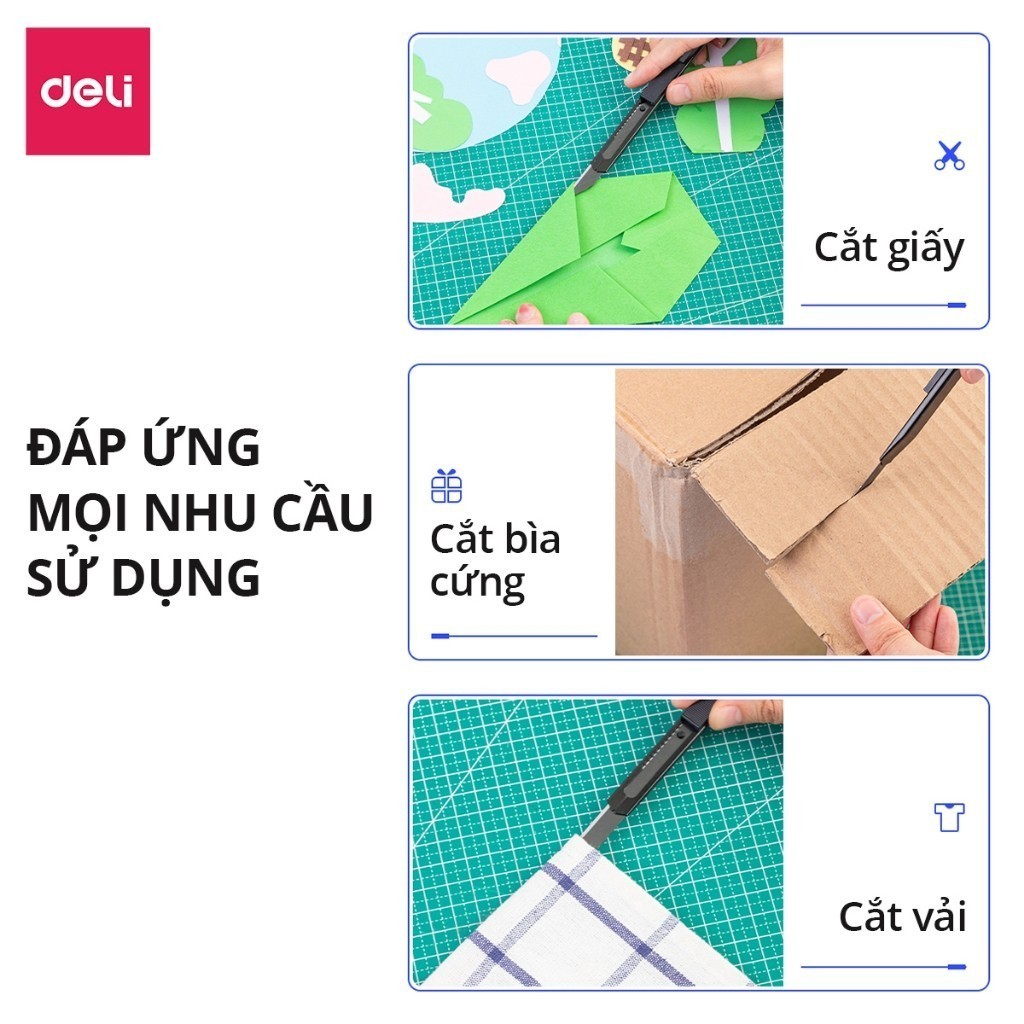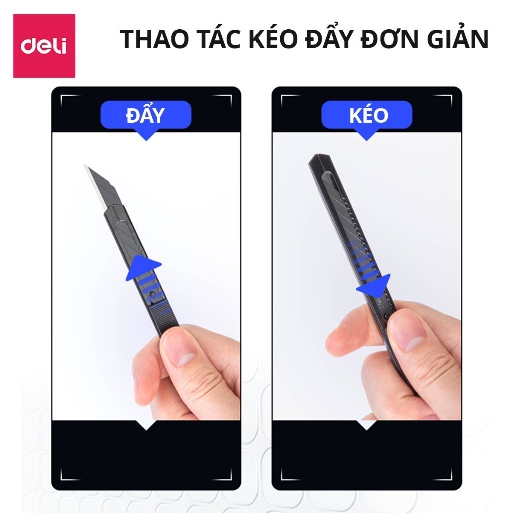 Dao Rọc Giấy Deli Cao Cấp Lưỡi Thép Không Gỉ SK5 Dao Rọc Mini Bỏ Túi Kim Loại Tiện Lợi Văn Phòng Học Sinh