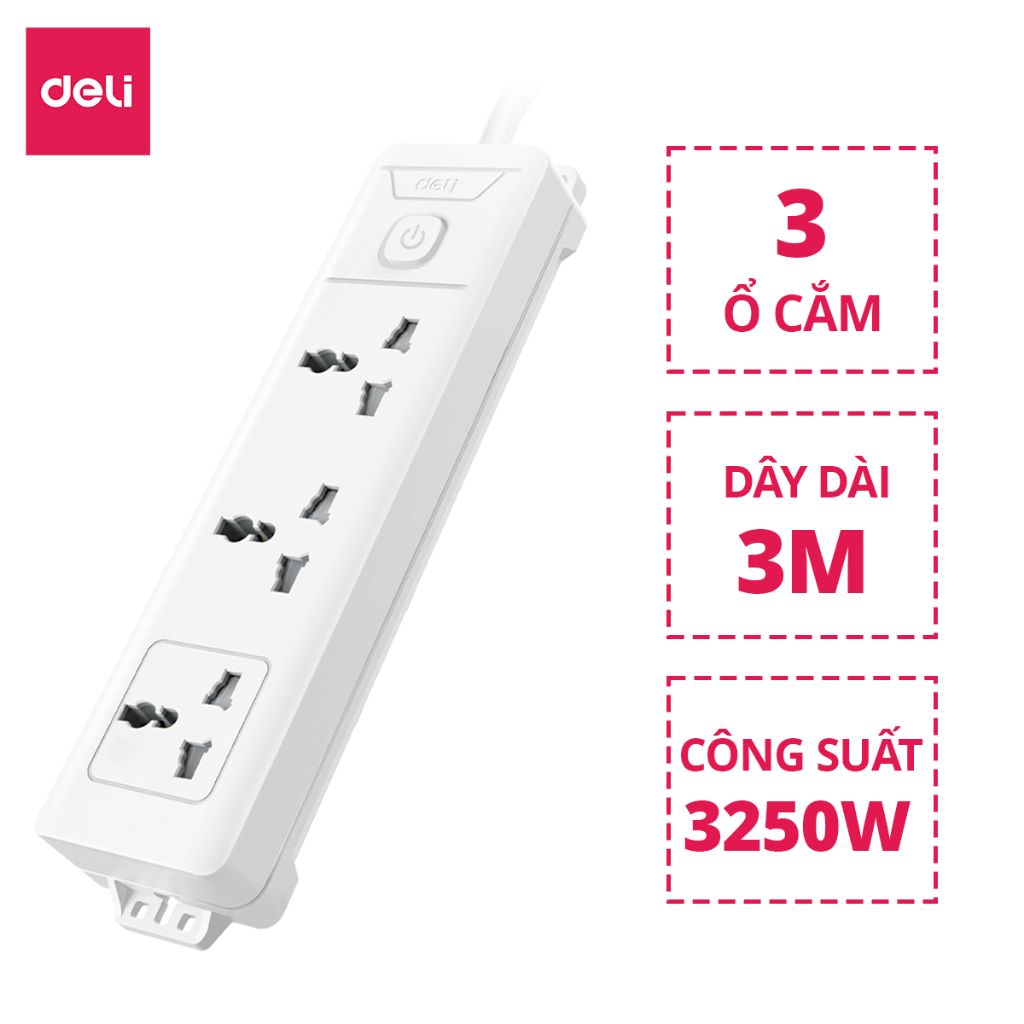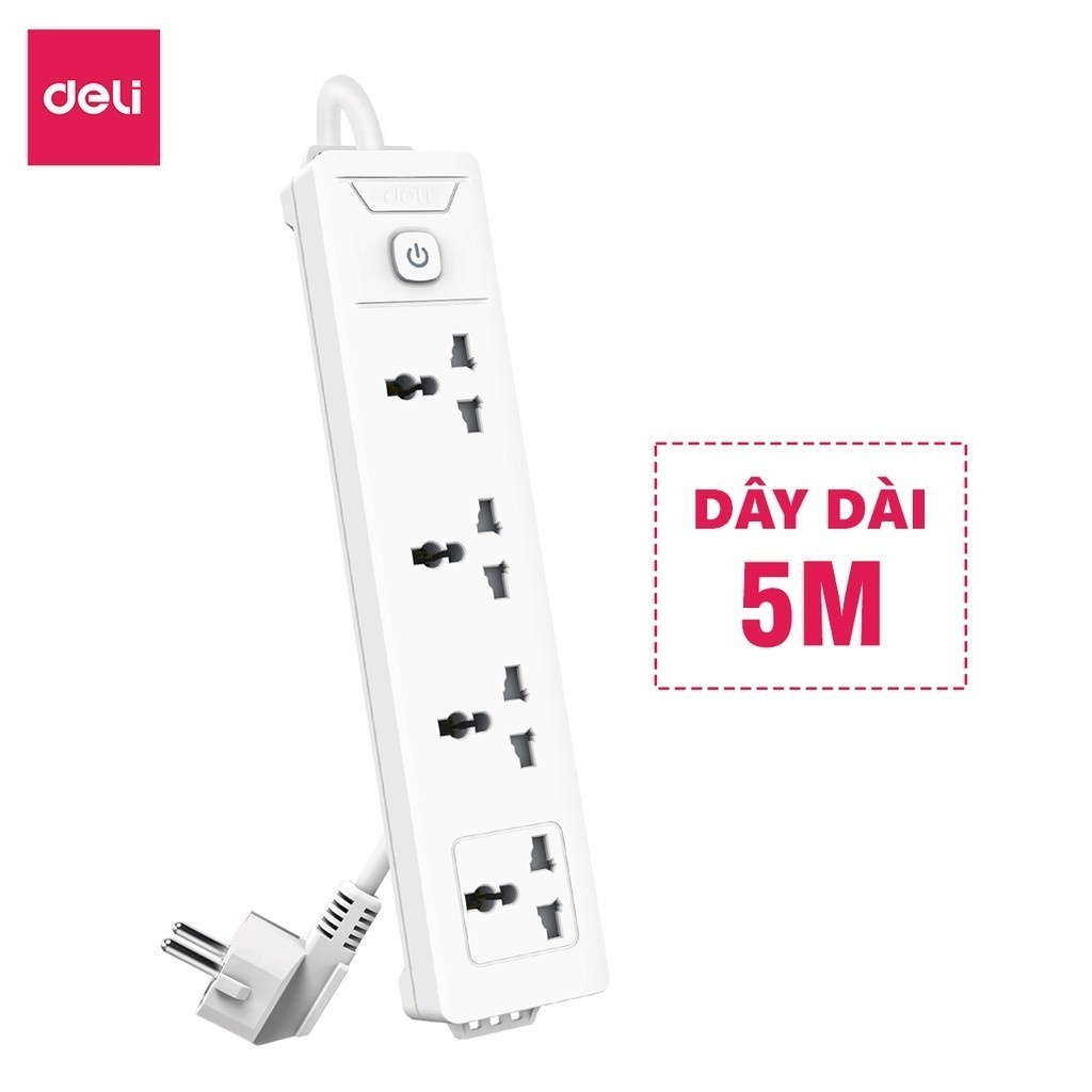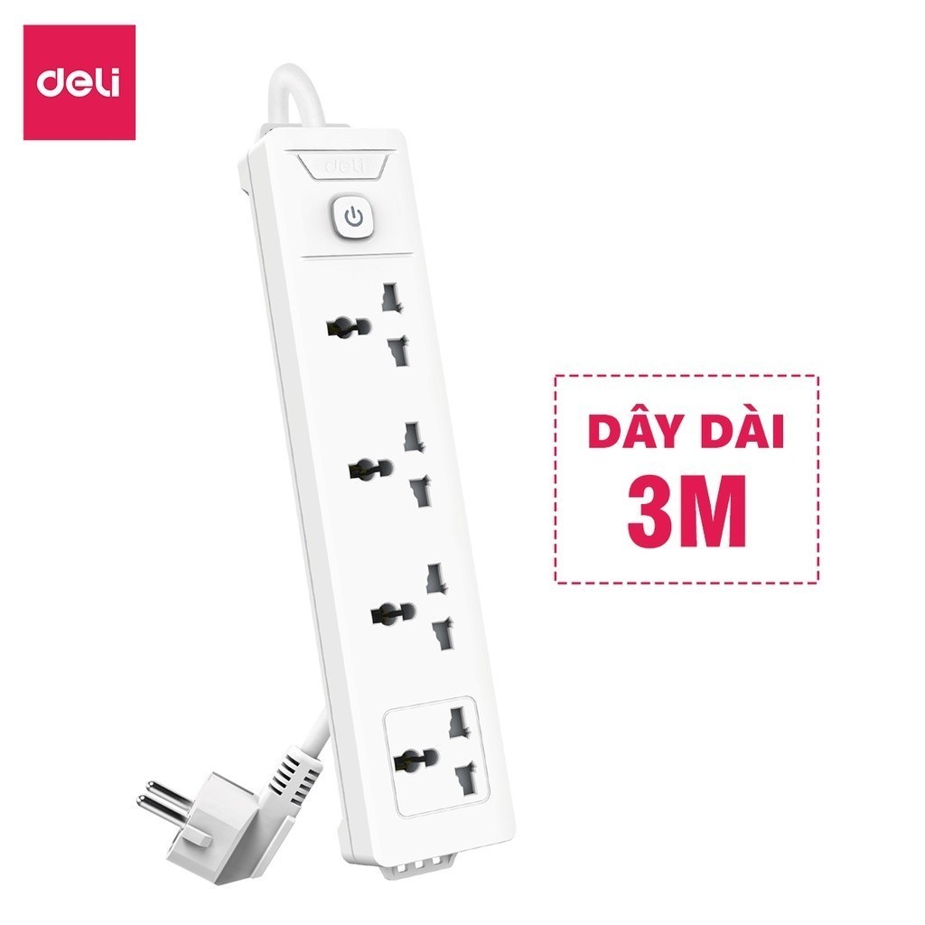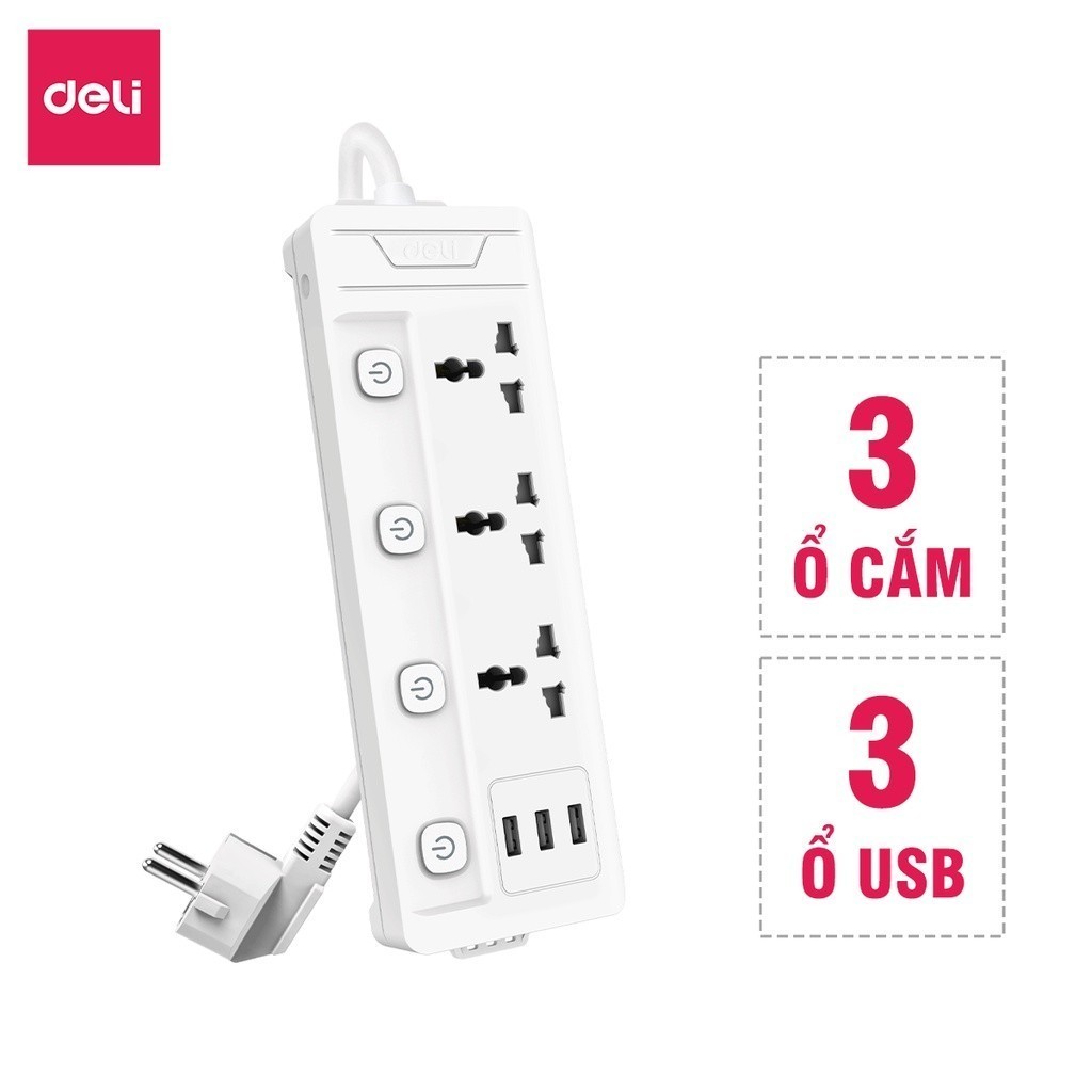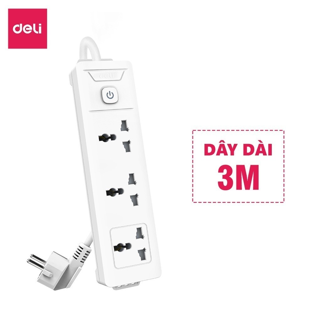 Ổ Cắm Điện Đa Năng DELI Cổng Type C USB Sạc Nhanh PD 20W 2-12 Ổ Vuông Dẹt Chịu Tải 3250W Cầu Chì Tự Ngắt Khi Quá Tải