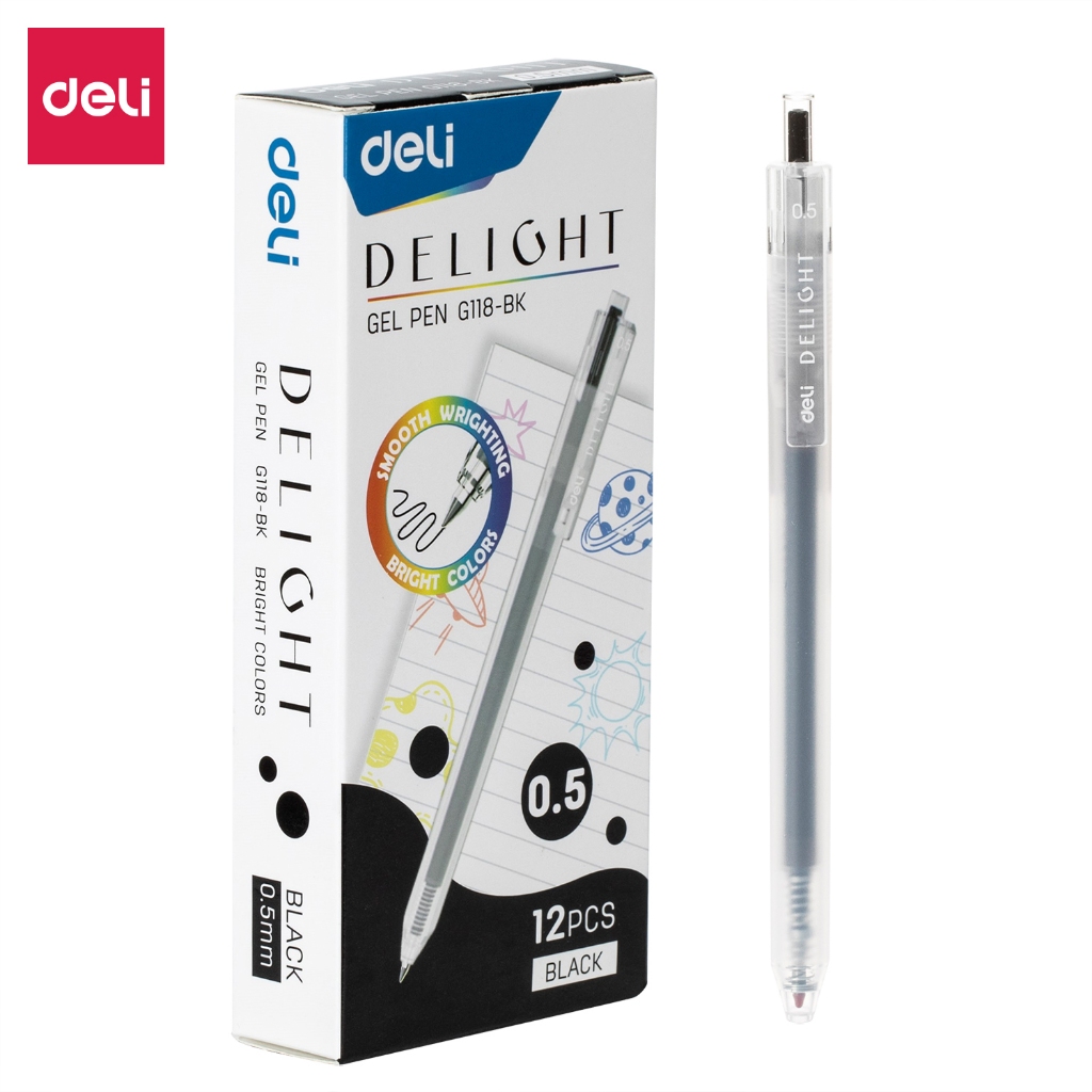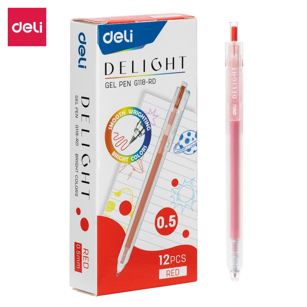 [DELI VPP] Bút Bi Mực Gel Deli Thân Mờ Trong Suốt màu đen đỏ xanh ngòi 0.5mm viết trơn mực đều học sinh sinh viên