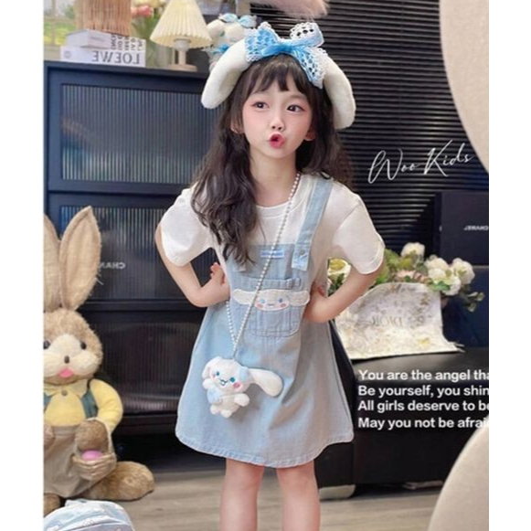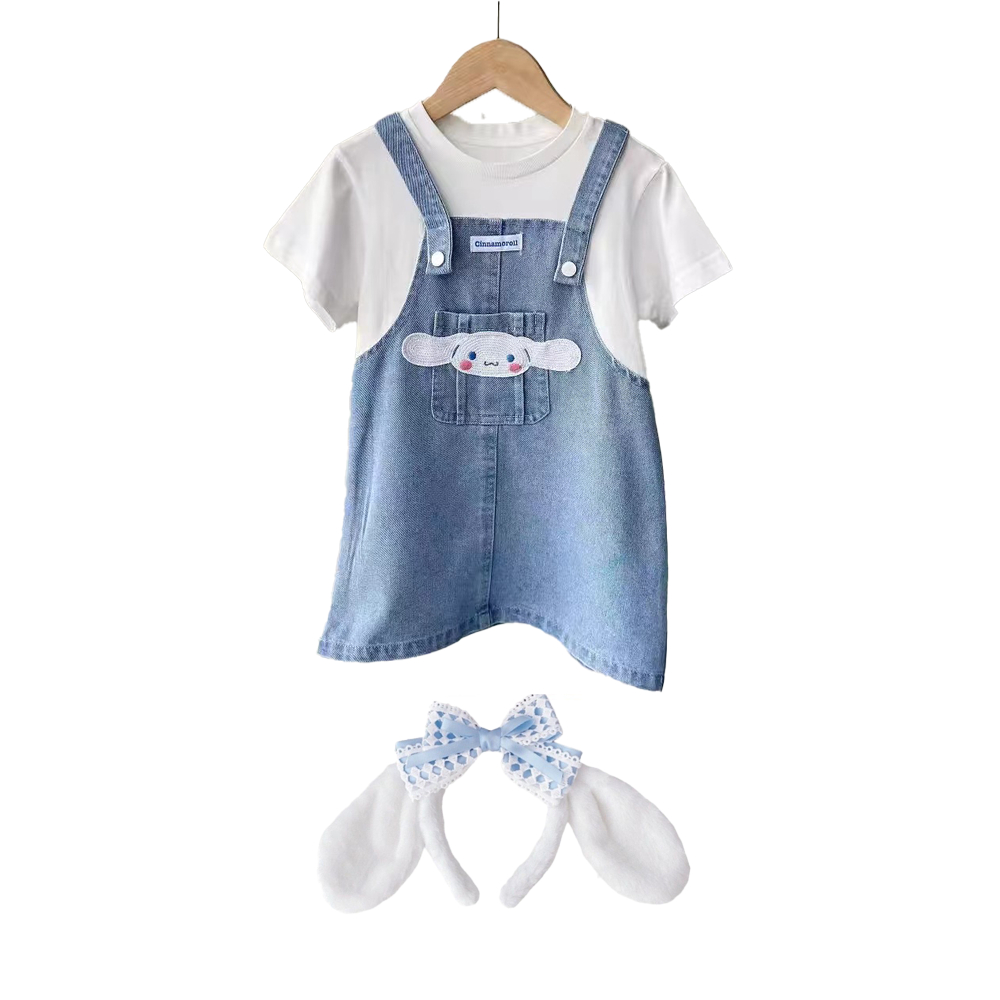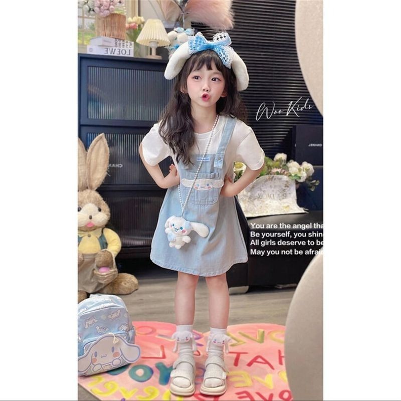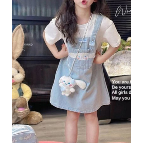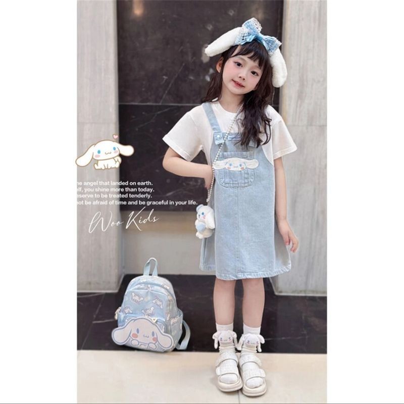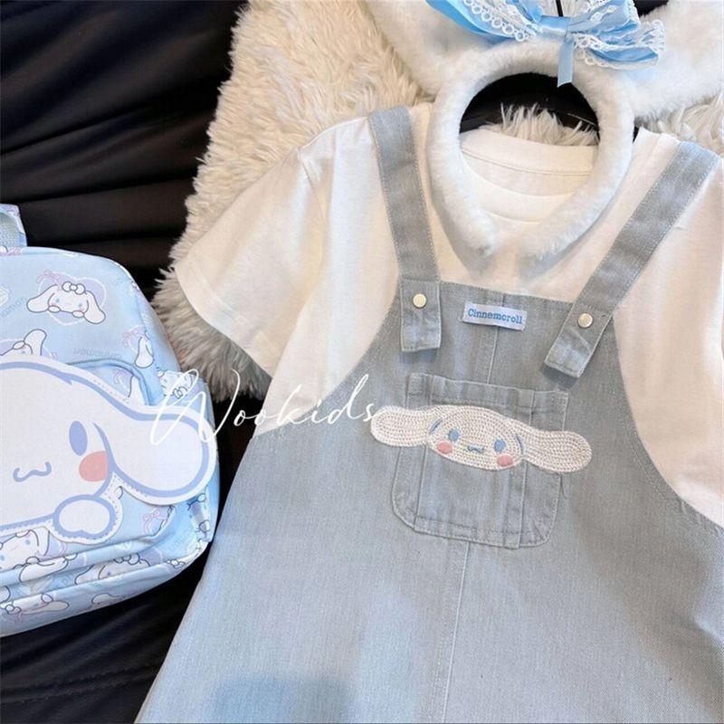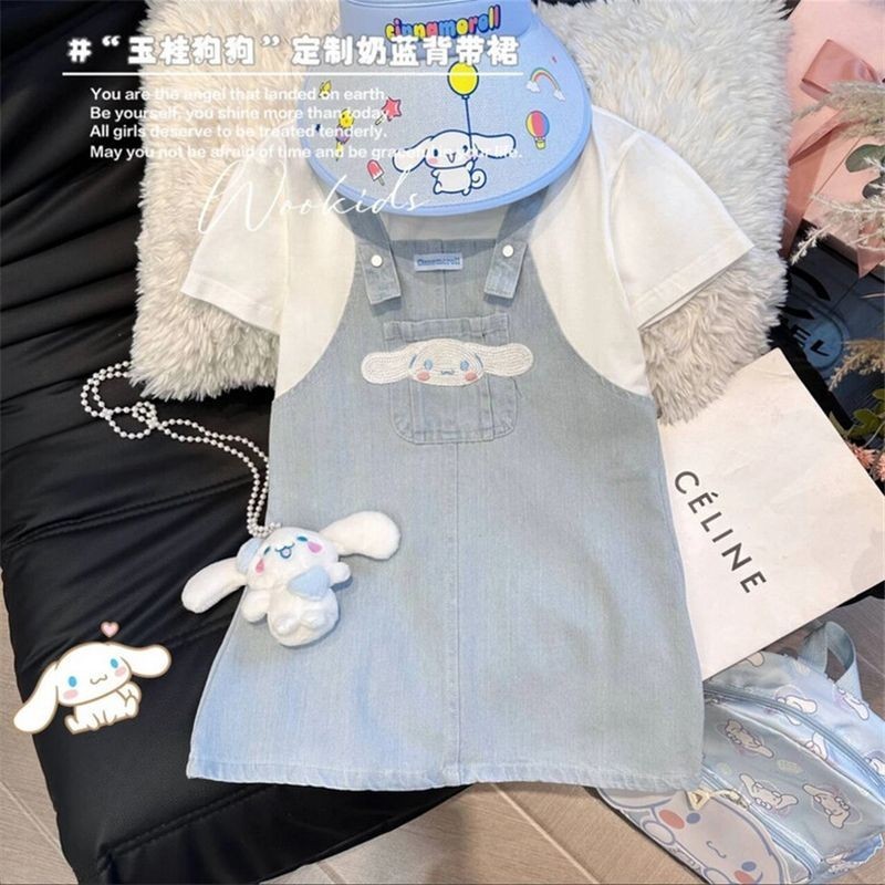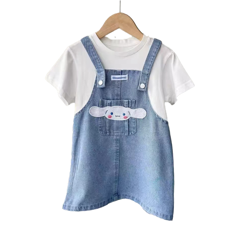 3-15y Bé Gái Thêu Cinnamoroll Giả Hai Dây Váy Đầm denim