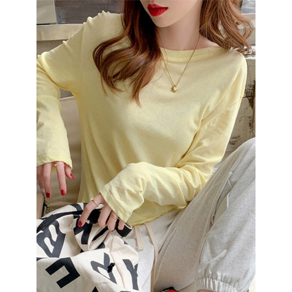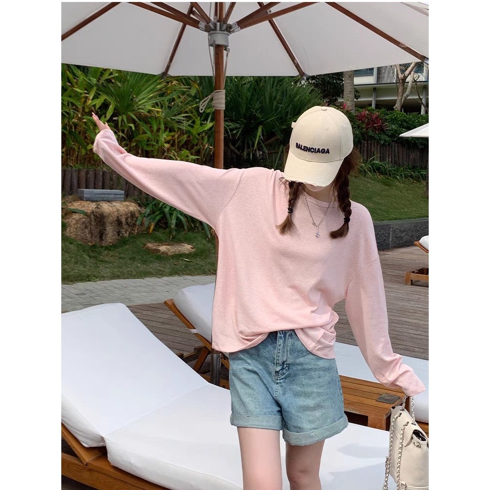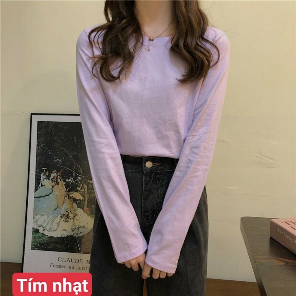 Áo thun tay dài cổ tròn nữ JULY,Áo thun dáng rộng chất xược cotton, thun giấy
