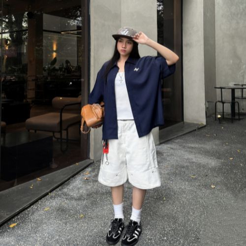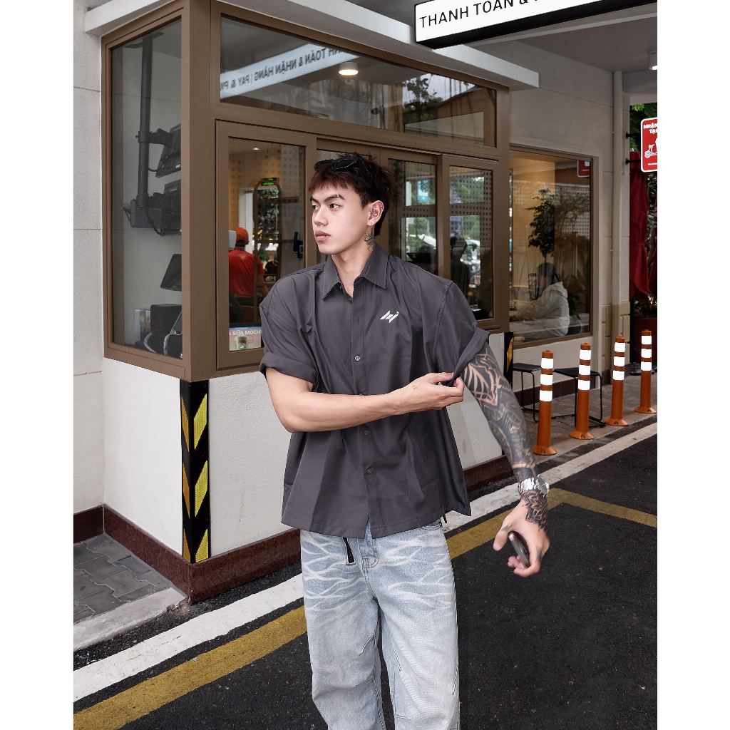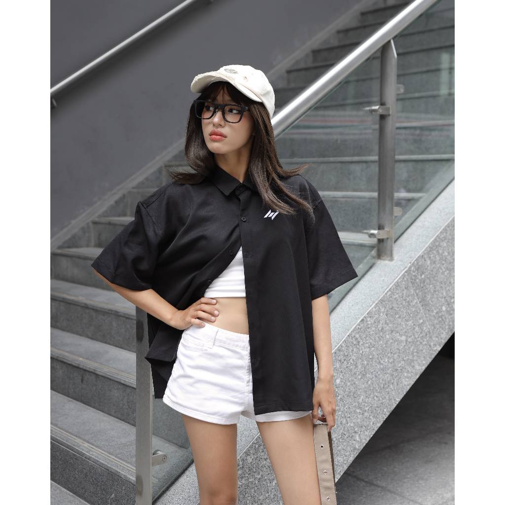 Áo Sơ Mi Boxy SigLogo Basic SolidStu Thêu Không Nhăn Unisex Local Brand - SM03