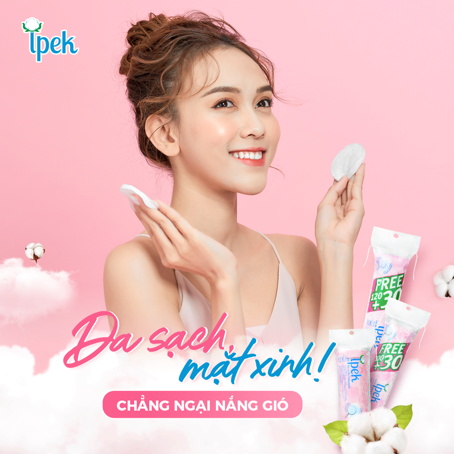 Combo set 2 Bông Tẩy Trang Ipek 150 miếng tròn 100% cotton chính hãng siêu mềm mịn an toàn, không xơ