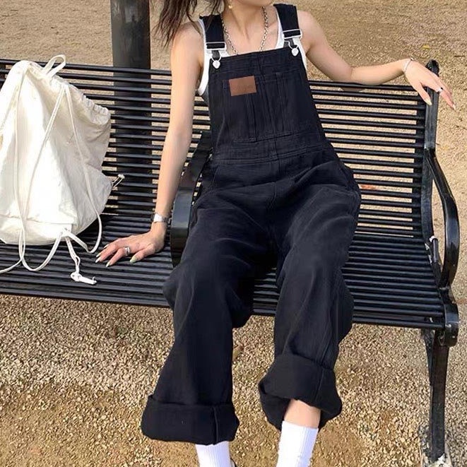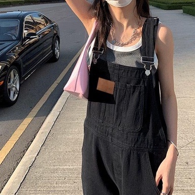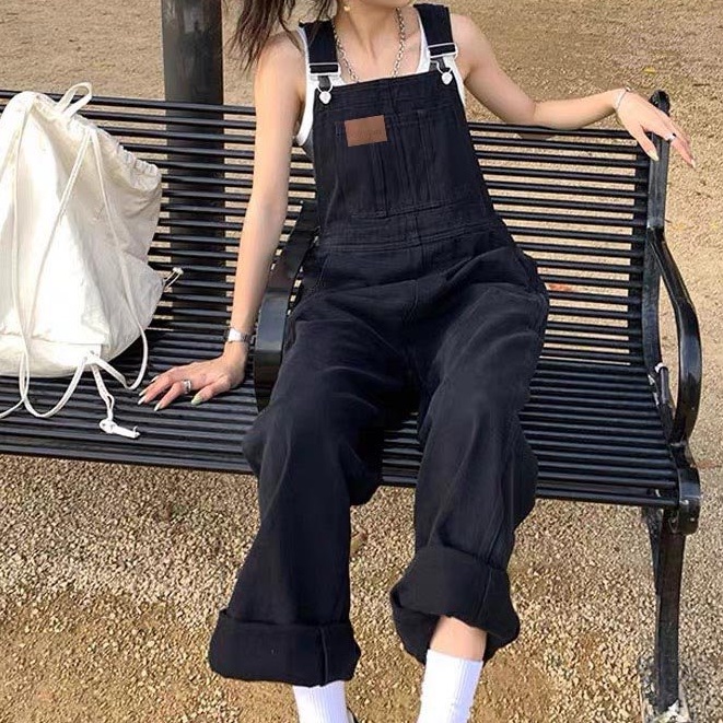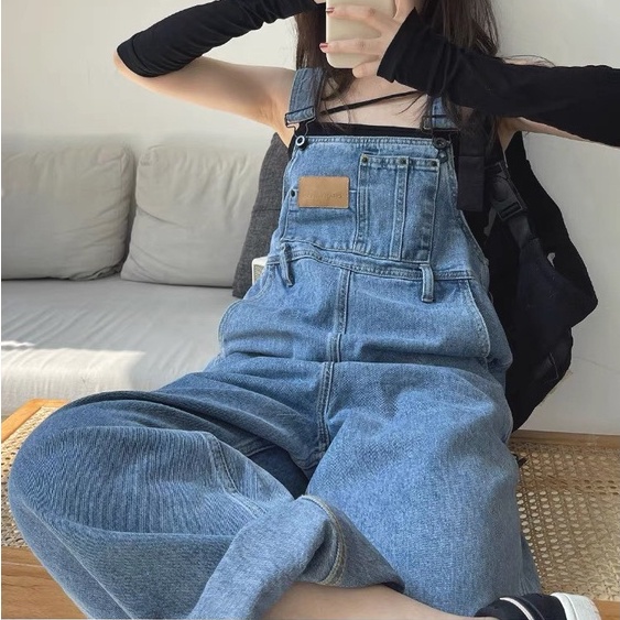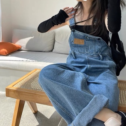 Quần yếm jean dài nữ phong cách, Quần yếm dài phong cách Hàn Quốc_Y3