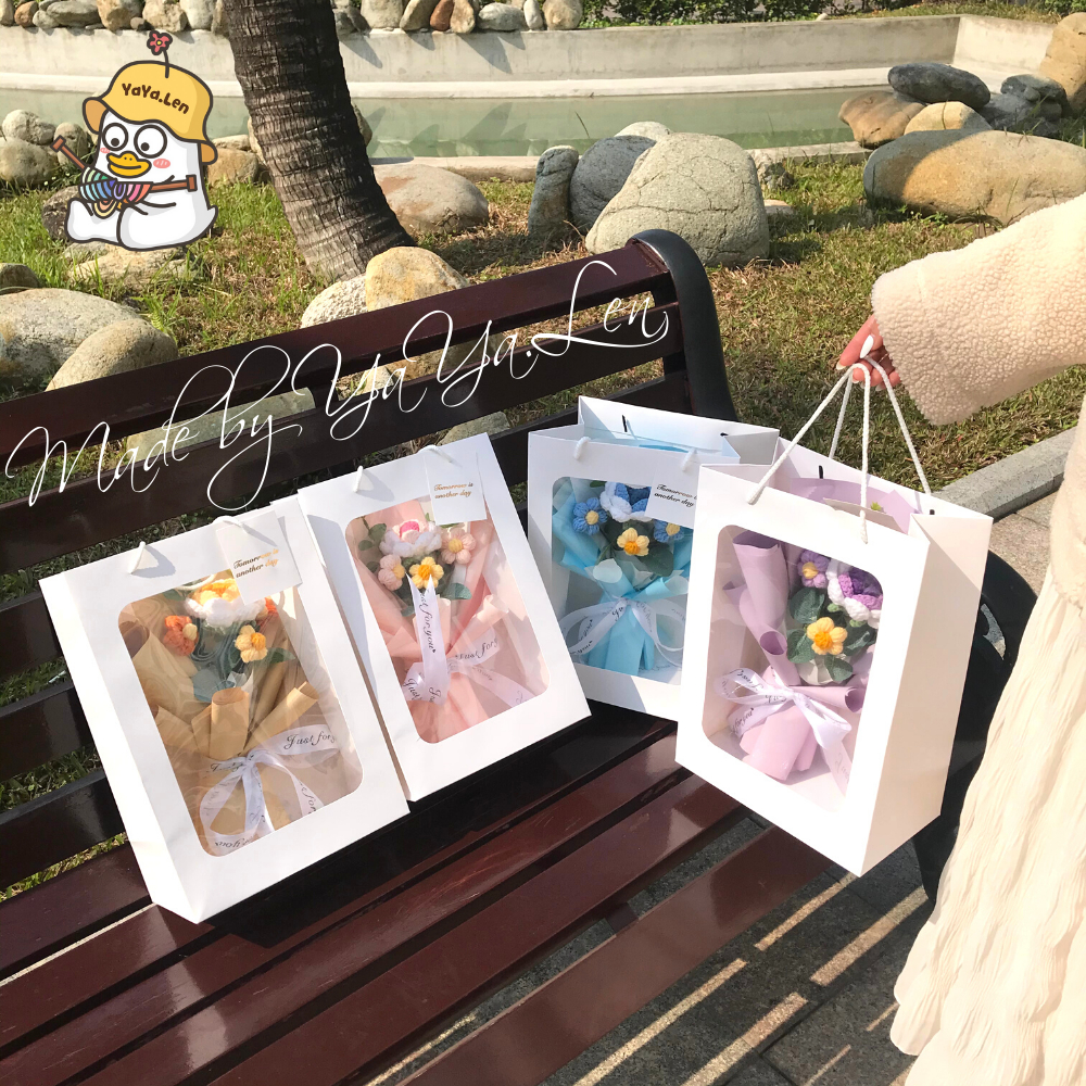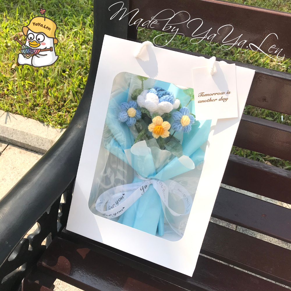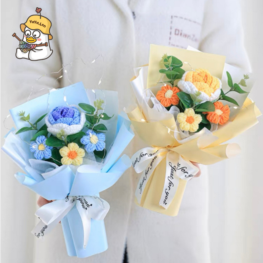 [SẴN + hoả tốc + tặng túi thiệp đèn] Bó hoa hồng len 1 bông mix hoa 5 cánh làm quà tặng valentine 14/2, 8/3, 20/10,...