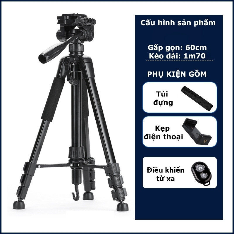 Chân Quay Máy Ảnh Điện Thoại Tripod 360° Hợp Kim Nhôm Chắc Chắn Hỗ Trợ Quay 360° 264 Tech