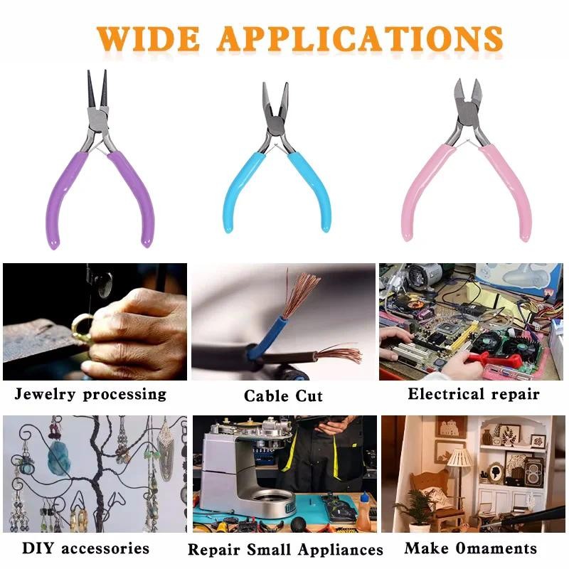 Bộ 3 Kìm Làm Đồ Trang Sức - Mũi Kim, Mũi Dây Xích, Mũi Tròn & Cắt Dây - Hoàn Hảo Để Sửa Chữa Trang Sức, Gói Dây