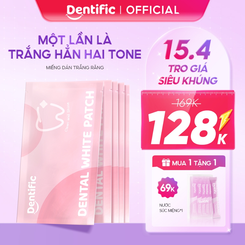 Miếng dán trắng răng Dentific sạch mảng bám, hỗ trợ cải thiện ố vàng răng miệng, hộp 5 miếng trắng răng