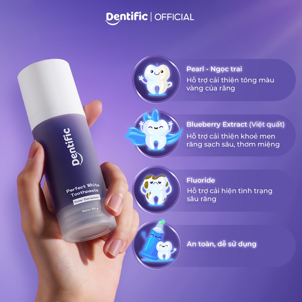 Kem đánh răng Dentific Hỗ trợ cải thiện tình trạng răng ố vàng,khoẻ men răng và sạch sâu 65g trắng răng