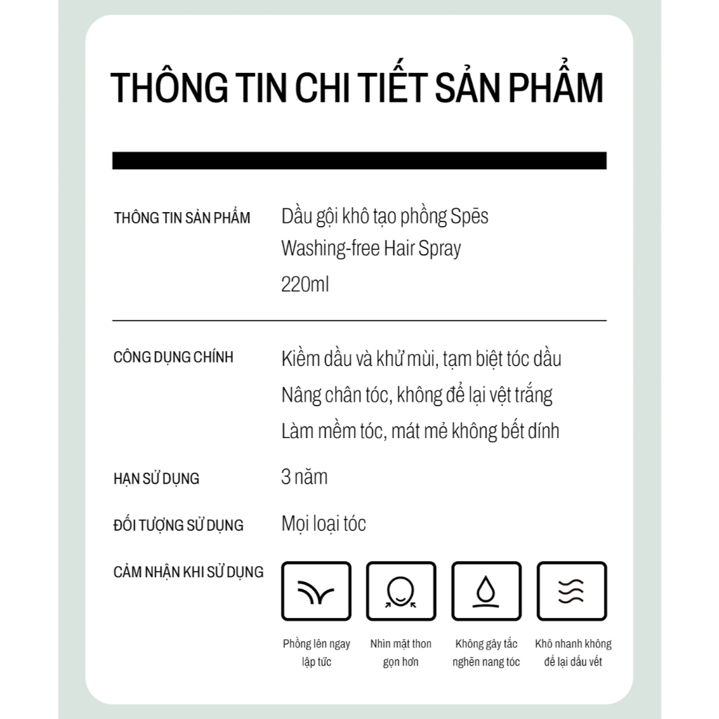 Dầu Gội Khô Spes Phiên Bản Mới 2025 Nâng Cấp Thêm Keratin và Tinh Dầu Argan Kiểm Soát Dầu, Không Bọt Trắng 220ml