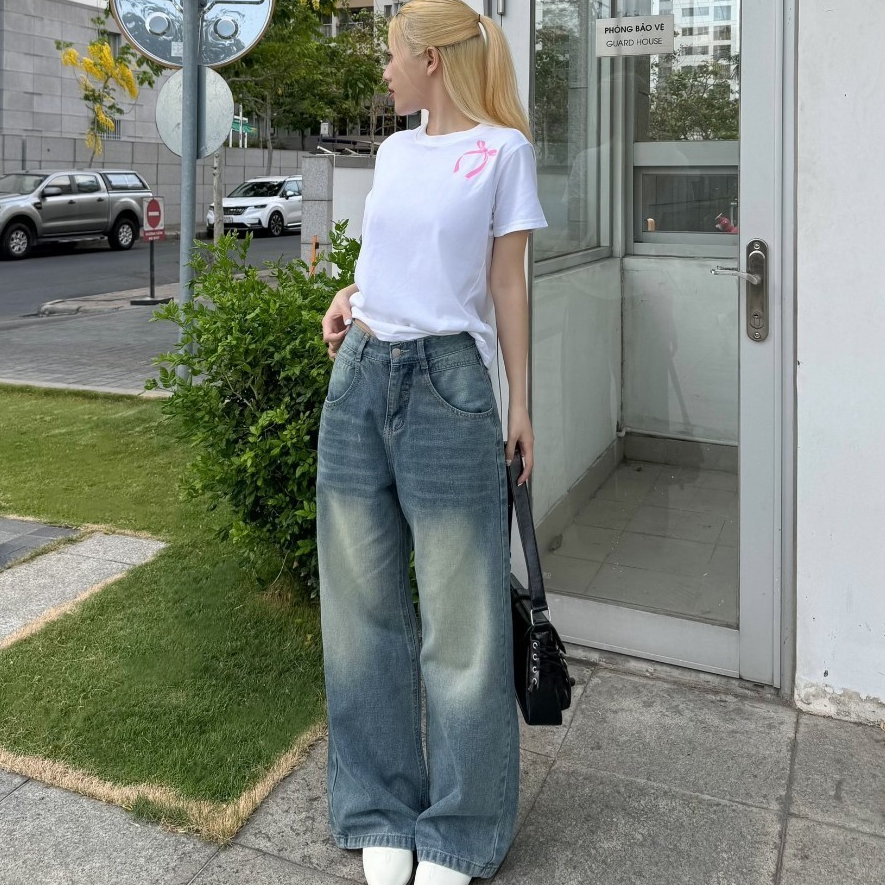 Quần Jean Ống Rộng Nữ MIAA Wash Bụi Màu Đen Và Xanh Lưng Cao Phong Cách Retro Ulzzang Hàn Quốc