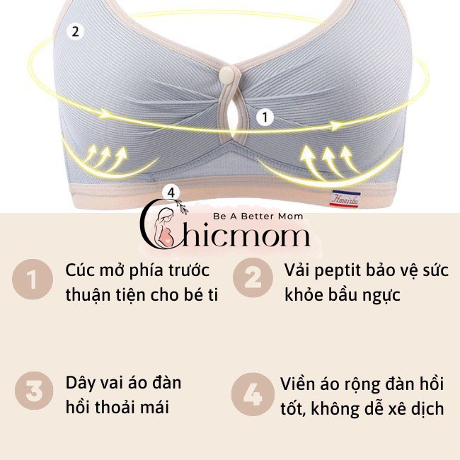 Áo Lót Ngực Bầu Chicmom Không Gọng Vải Cotton Có Cúc Mở Ngang Bigsize CM001