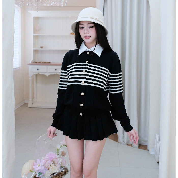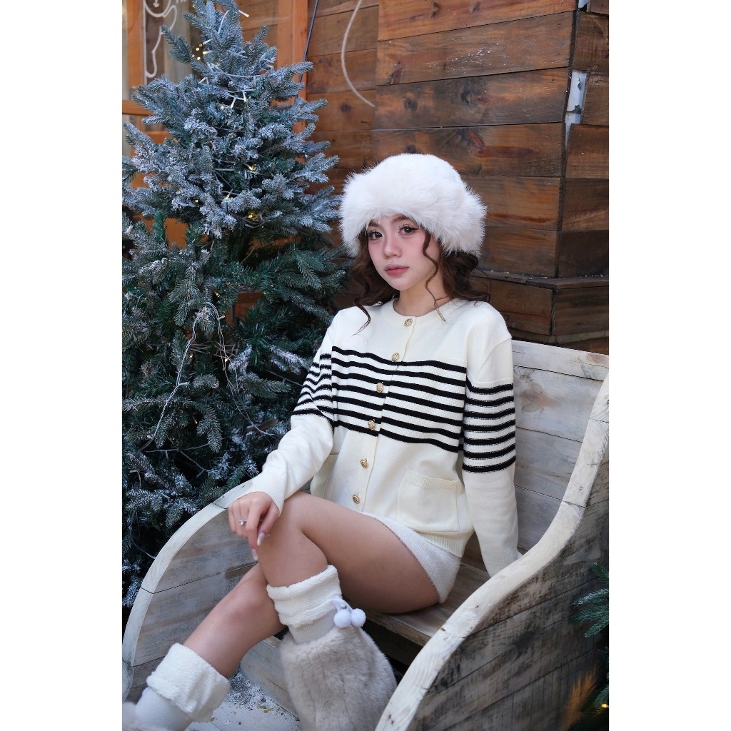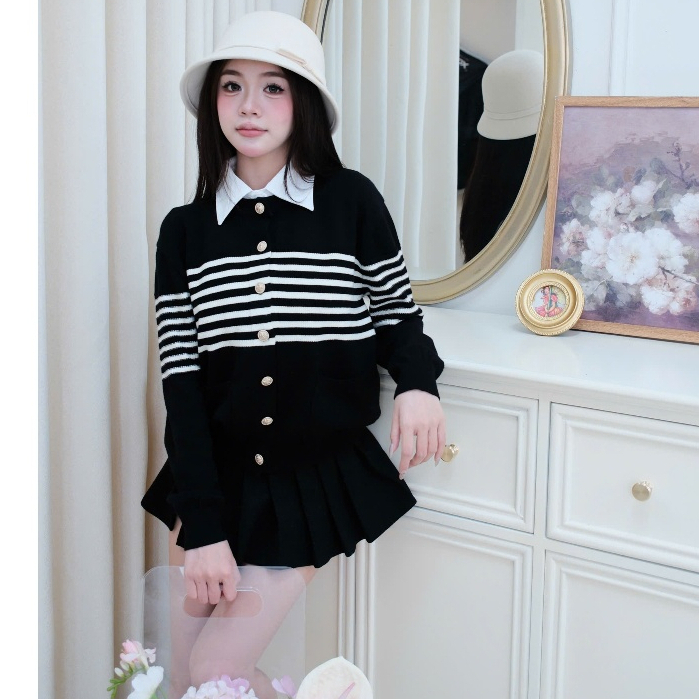 ( DEAL mở bán ) Áo Len Cardigan Viber Tiểu Thư Sang Chảnh, Áo Len Dệt Kim Kẻ Ngang Basic LA11