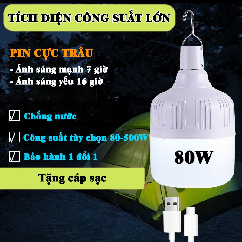 Đèn tích điện 500w đa năng, đèn treo chống nước ip55, công suất lớn, pin trâu, tặng kèm cáp sạc