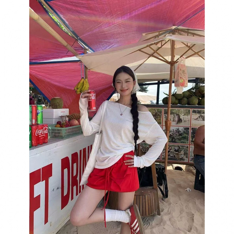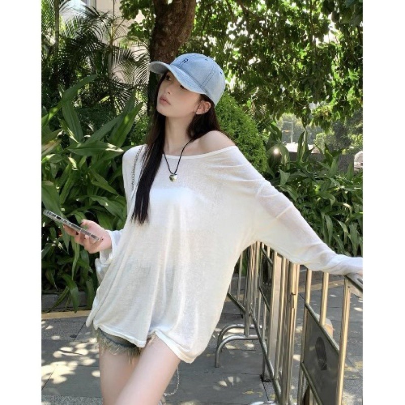 Áo chống nắng Trễ Vai Tay Ovesize Dài basic hàn quốc Áo thun mùa hè