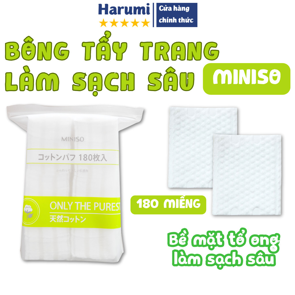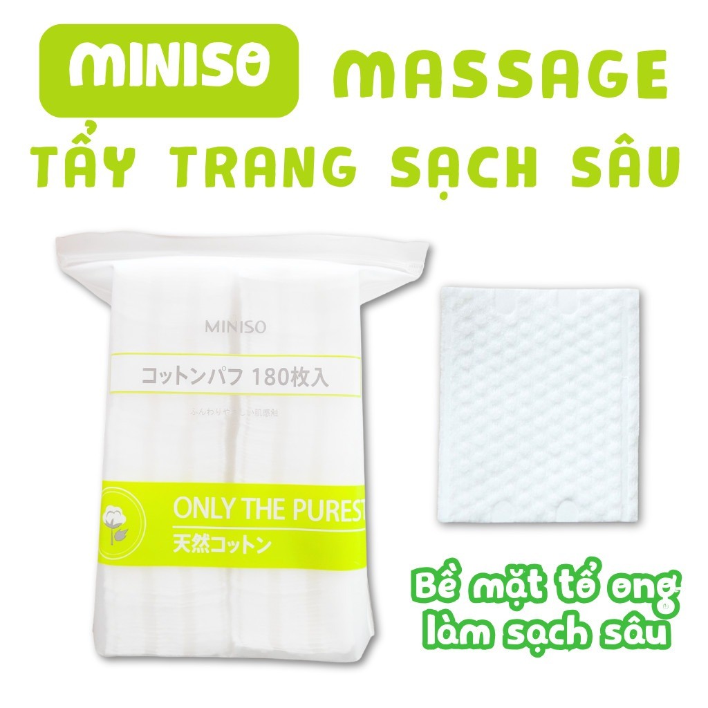 Bông Tẩy Trang Miniso Làm Sạch Sâu Miniso Nhật Bản 180 Miếng, Bông Tẩy Trang Bạch Tuyết Miniso Massage, Miniso 180 Miếng
