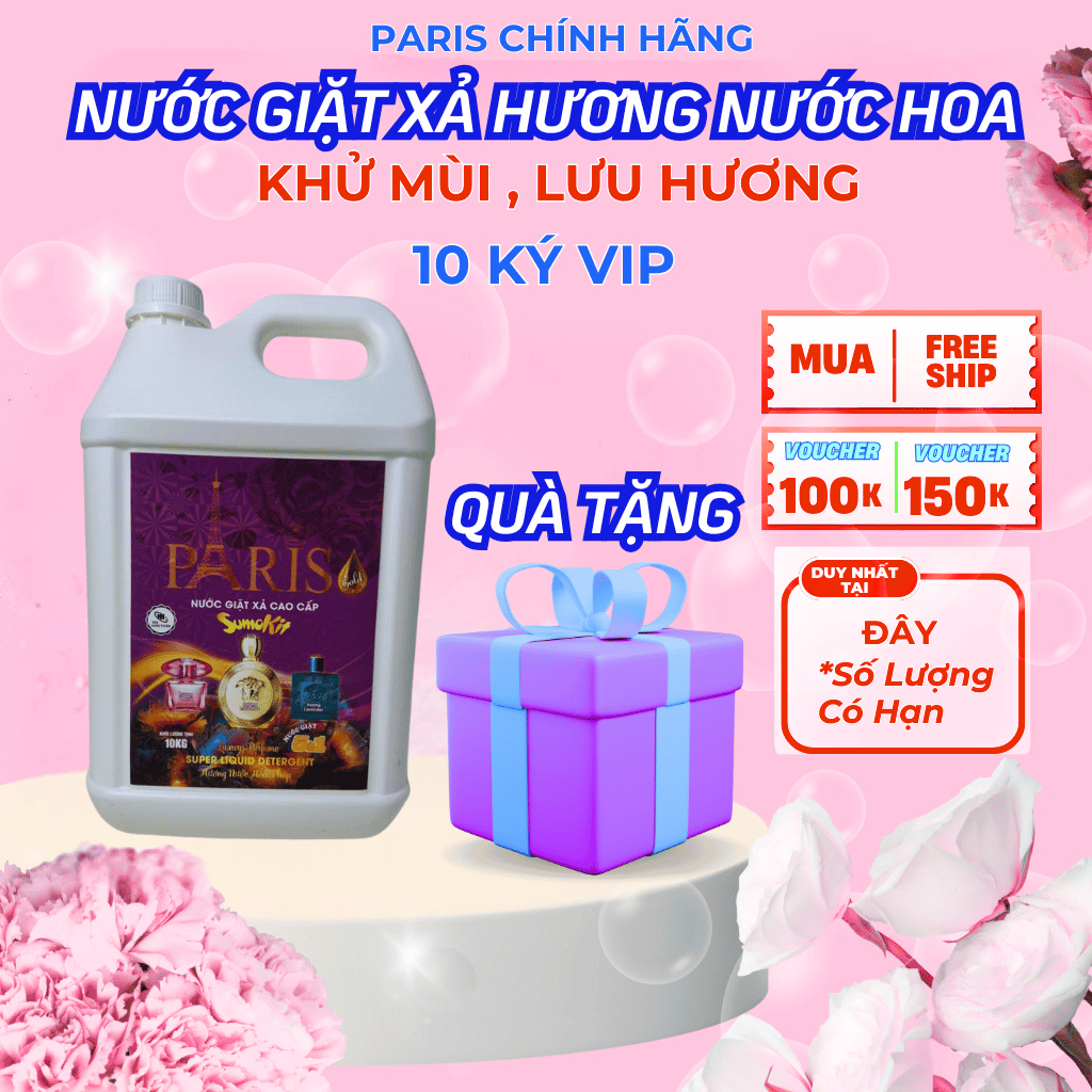 Nước Giặt Xã Paris can 5kg - 10kg , túi 3.6kg , 0,6kg hương 72H tích hợp lưu hương làm mềm vải