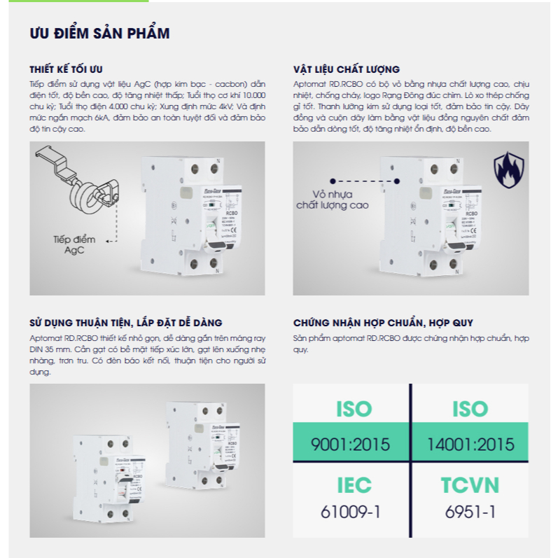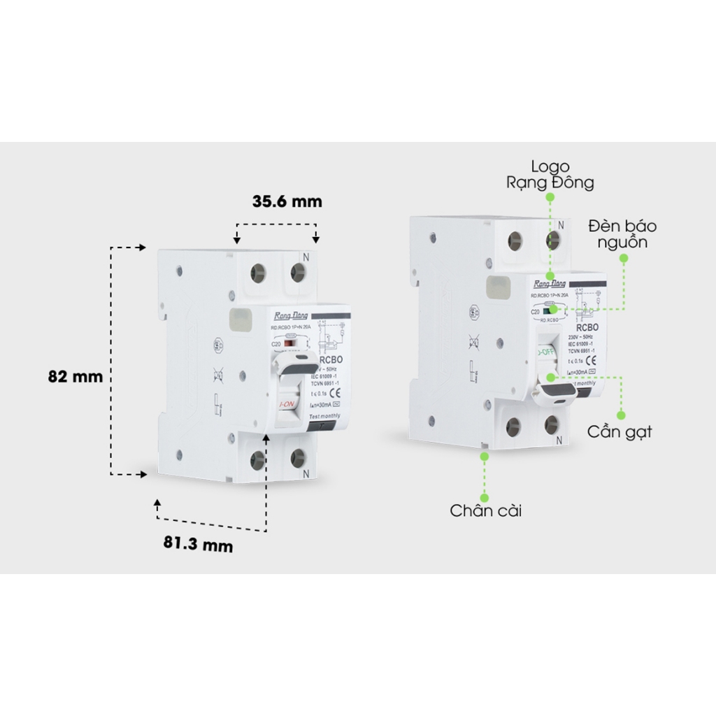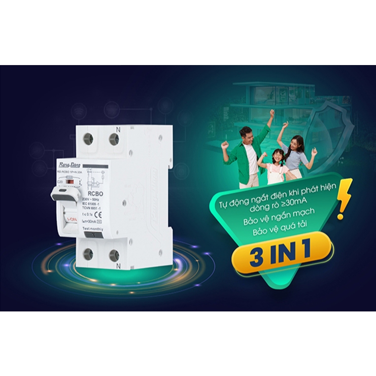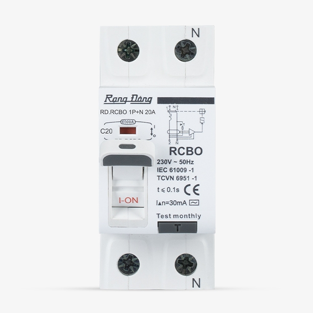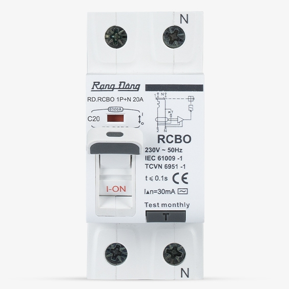 Cầu dao Aptomat chống giật, CB chống dòng rò Rạng Đông 1P + N 20A - 63A Cao cấp