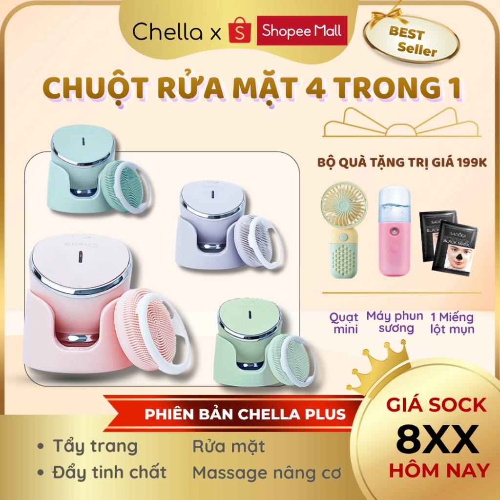 Chuột Rửa Mặt Chella 4 trong 1 hỗ trợ Tẩy Trang, Nâng Cơ, Máy Đẩy Tinh Chất, Máy Rửa Mặt - Bảo Hành 1 Năm CHELLA.MAKEUP