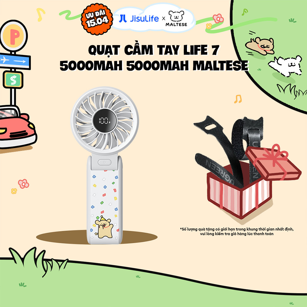 Quạt cầm tay tích điện mini Jisulife Life 7 5 cấp độ gió 3600/5000mAh - Sử dụng lên đến 12h - Chính hãng - BH 12 tháng