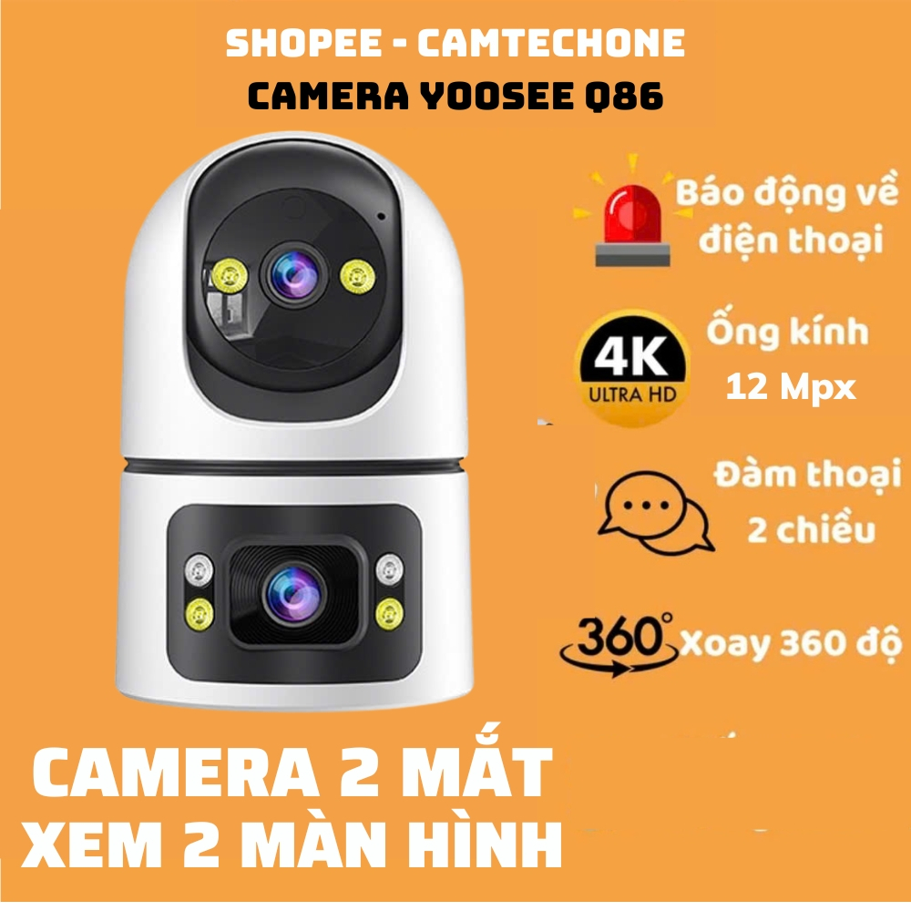 Camera Yoosee 2 Mắt trong nhà Xem 2 Màn Hình Cùng Lúc Xoay 360 Độ, Xem Đêm Có Màu, Hỗ Trợ Đàm Thoại 2 Chiều