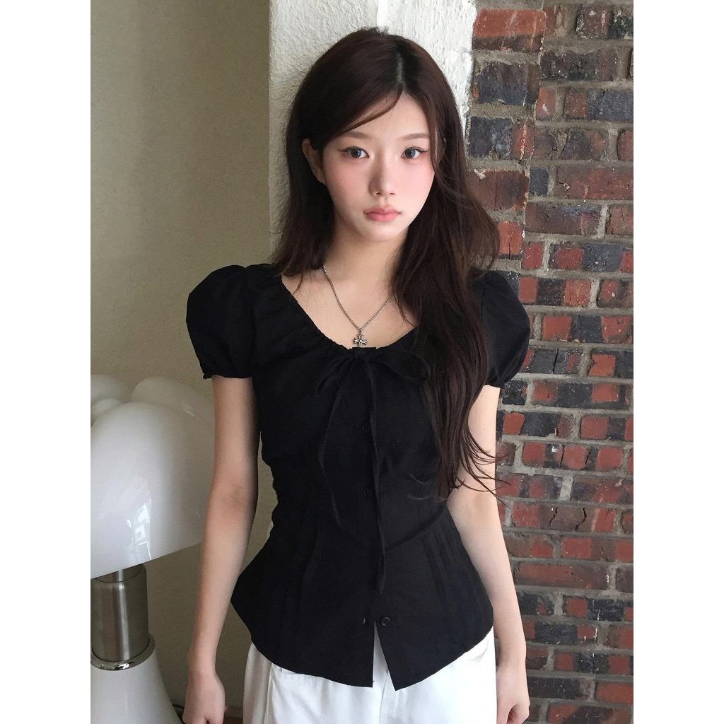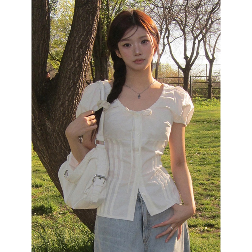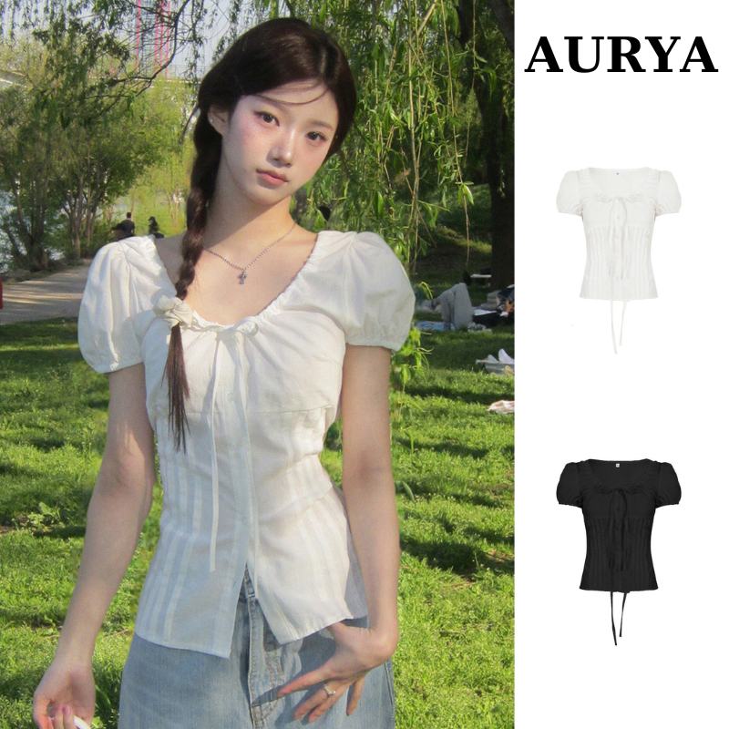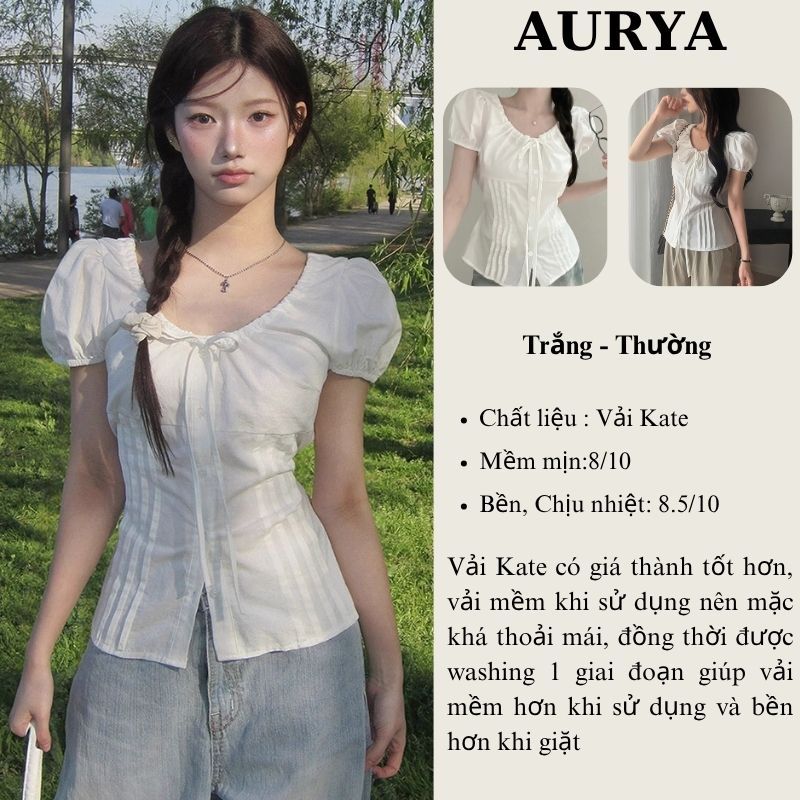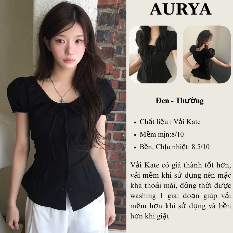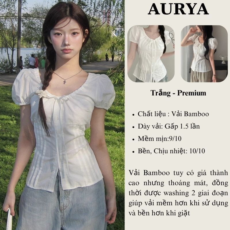 Áo babydoll nữ kiểu Linen tay phồng nơ ngực công chúa phong cách - AURYA