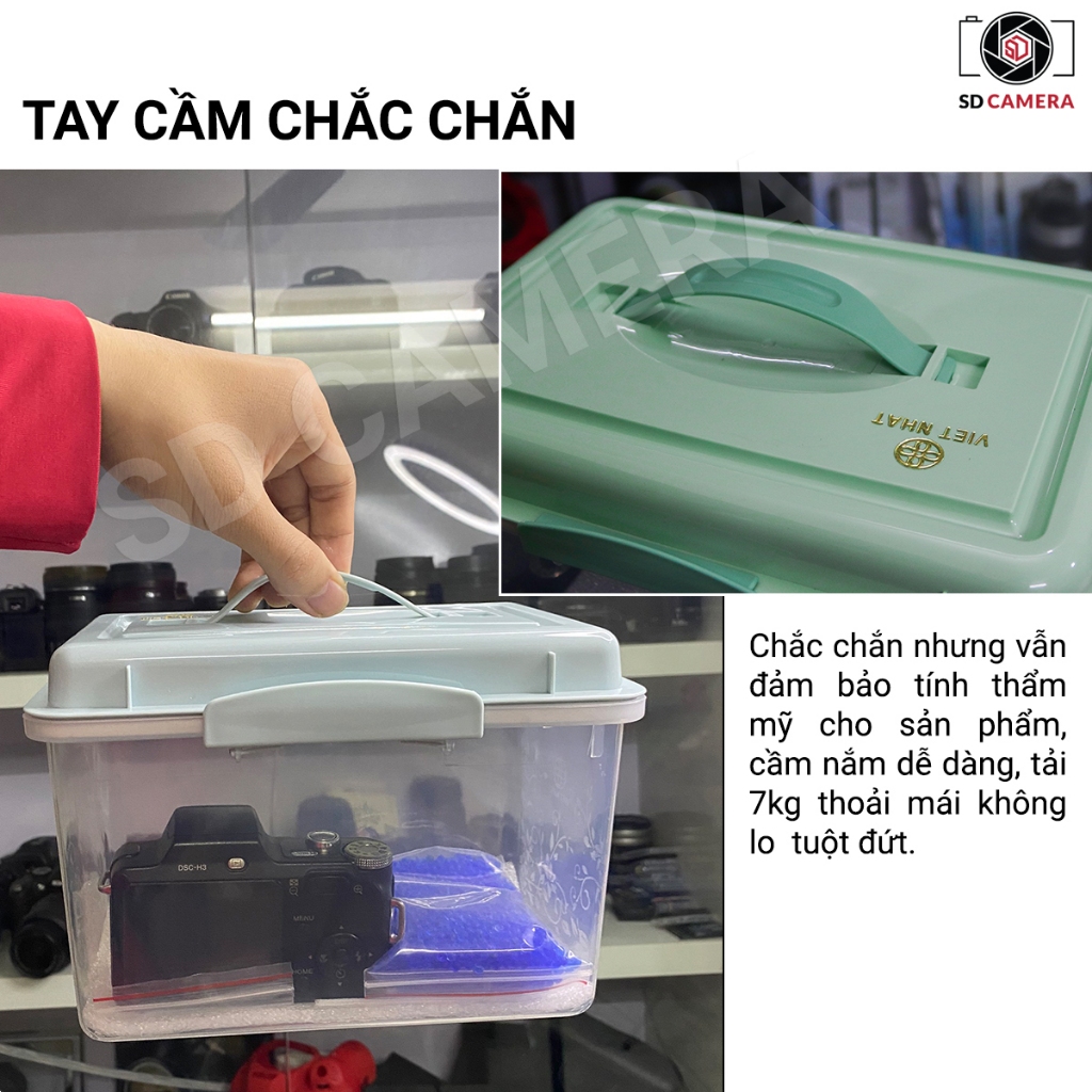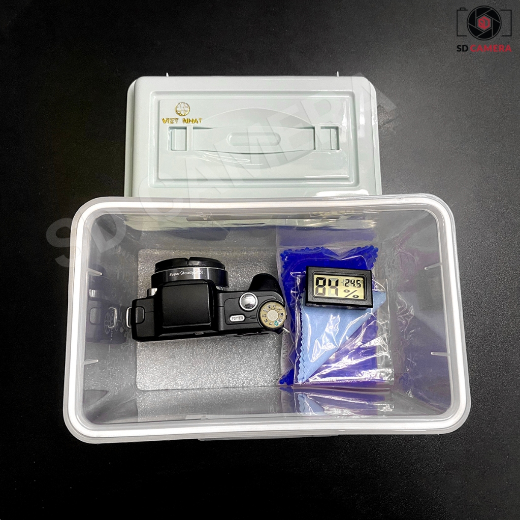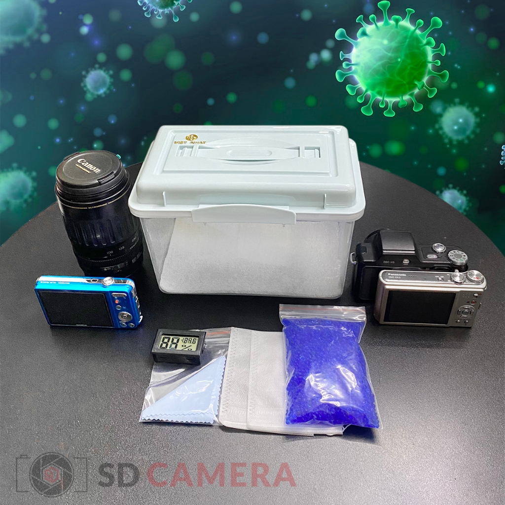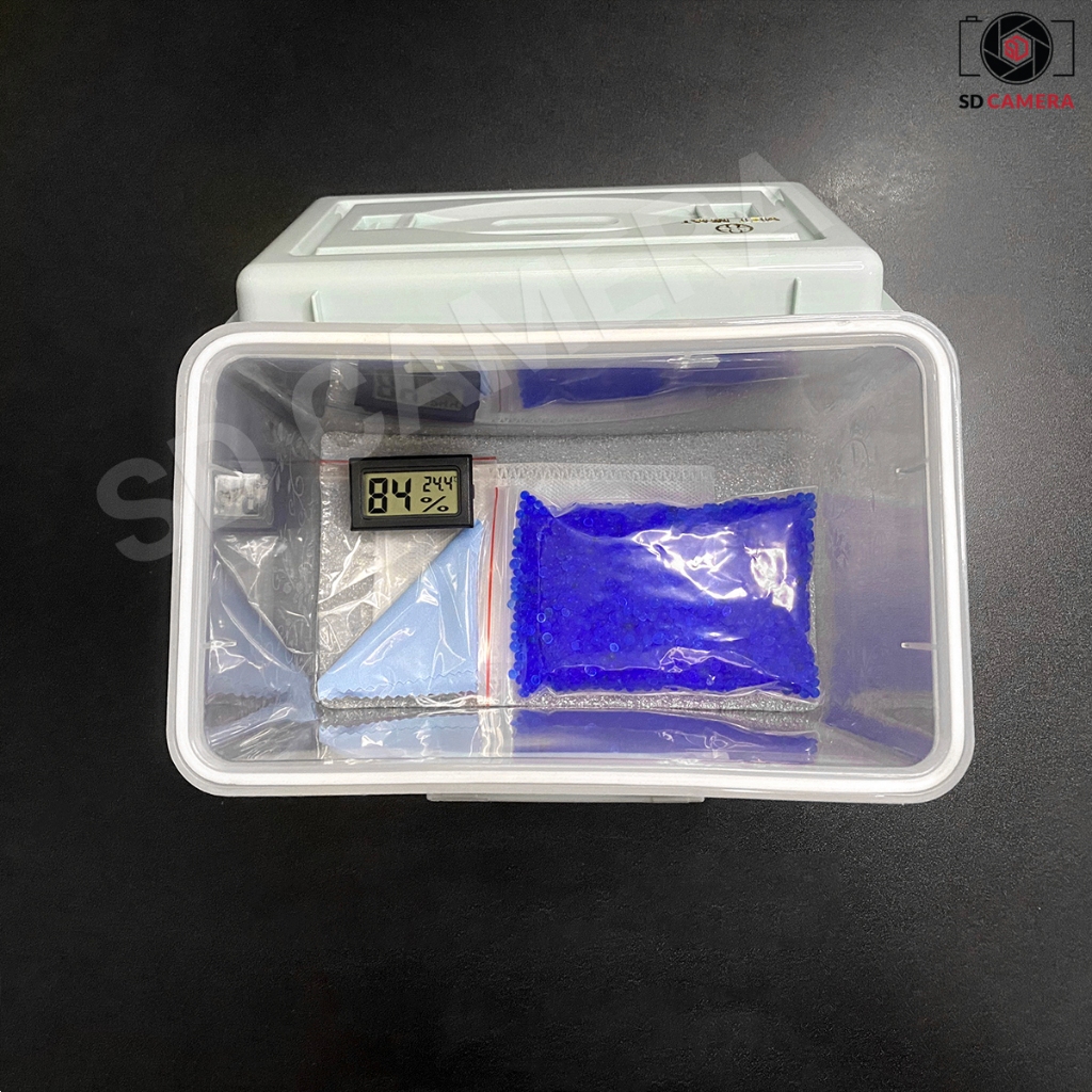 Hộp Chống Ẩm Cho Máy Ảnh, Ống Kính Nhỏ Gọn Tiện Lợi Khi Đi Du lịch + Hạt Hút Ẩm + Ẩm Kế + Khăn lau lens