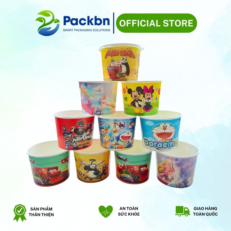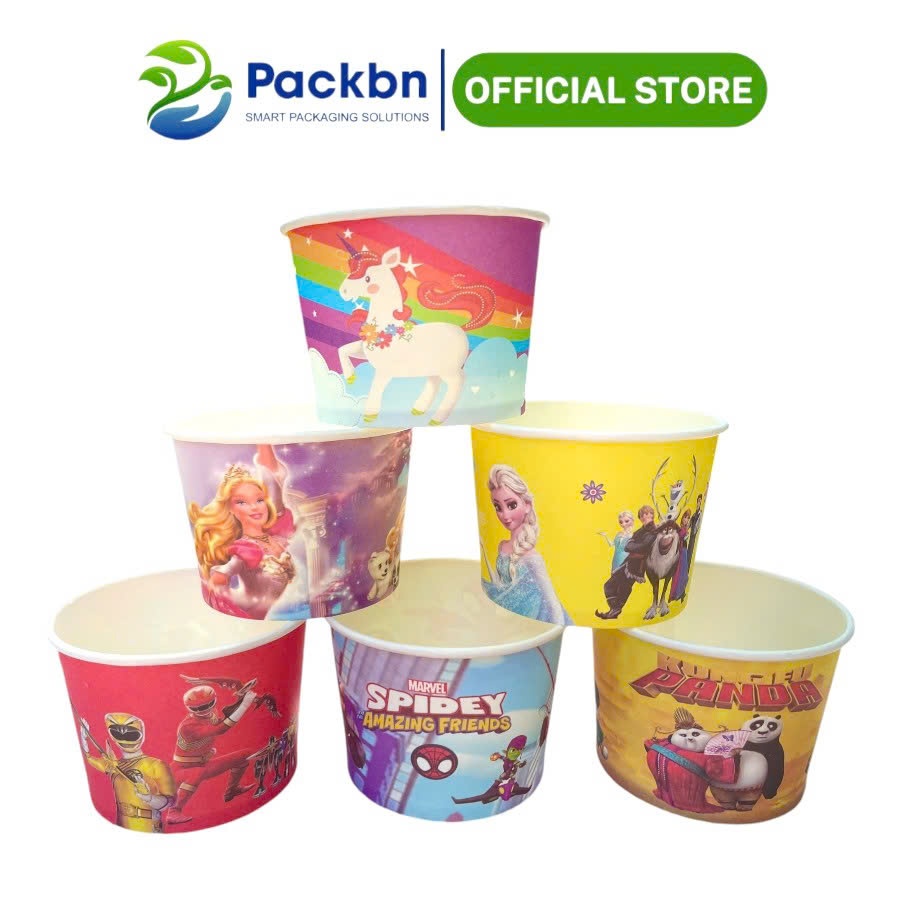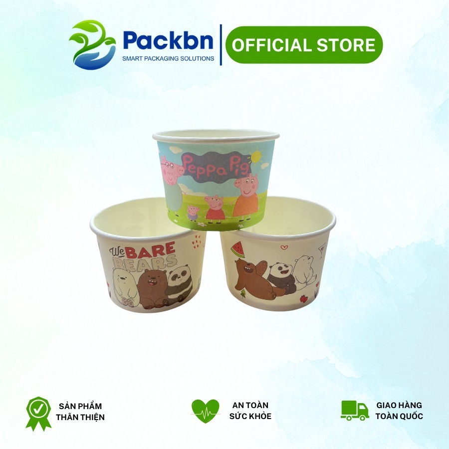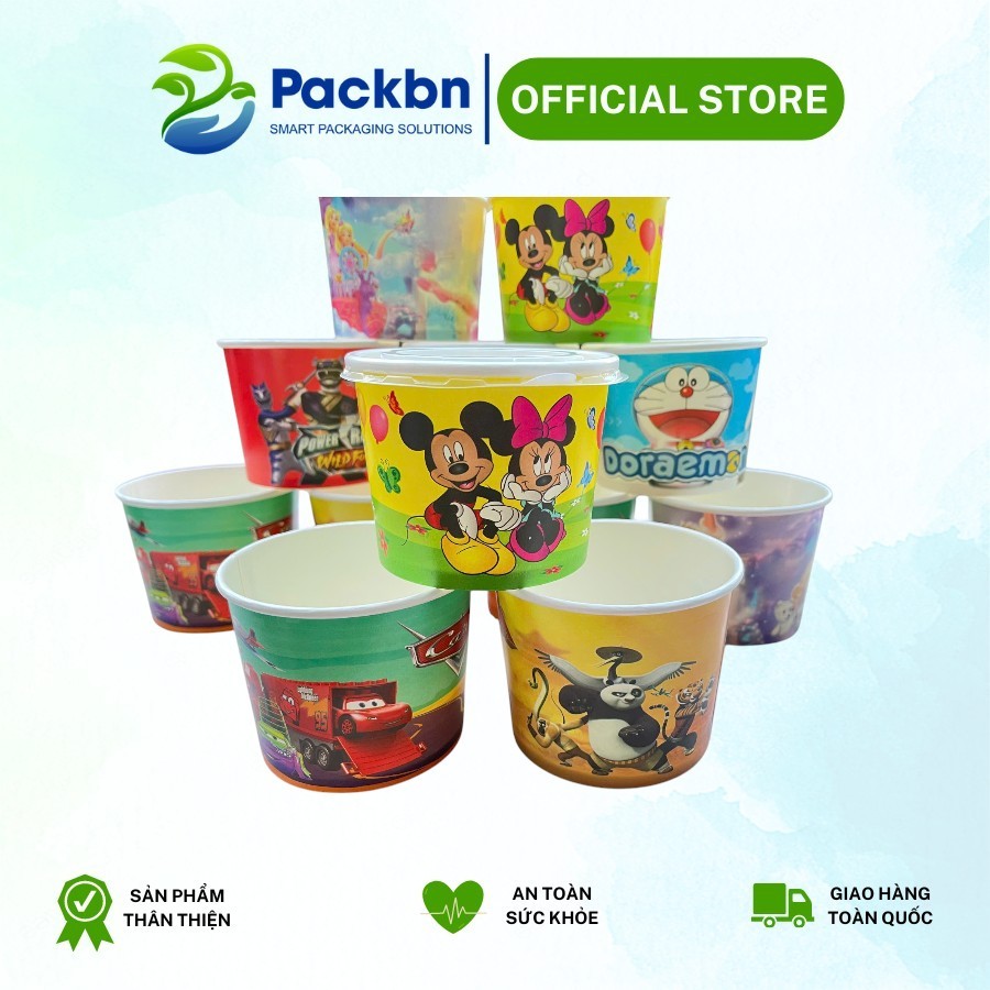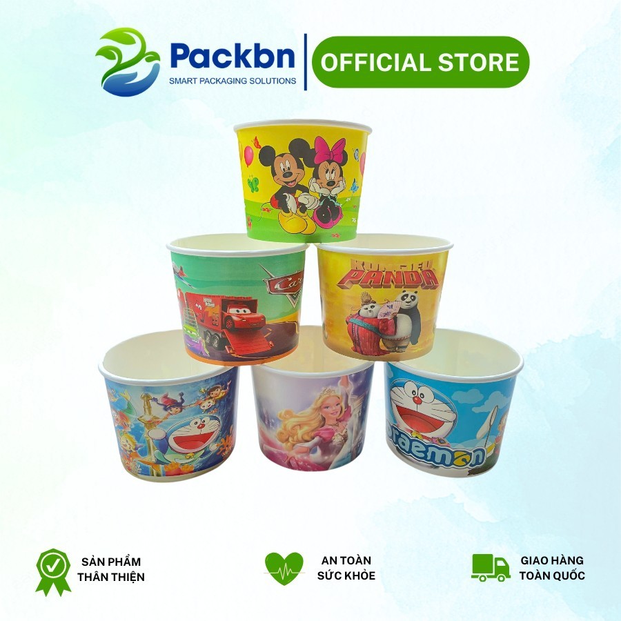 Combo 50 Tô Bát Giấy In Họa Tiết Có Nắp Đựng Kem, Tàu Hũ, Cháo Dinh Dưỡng...giao màu ngẫu nhiên