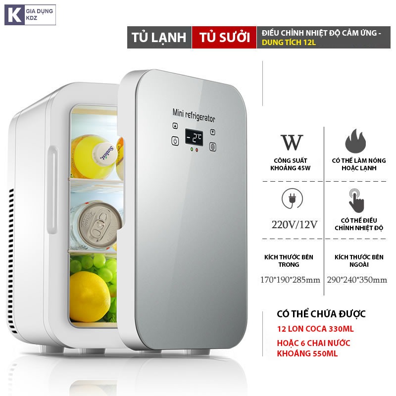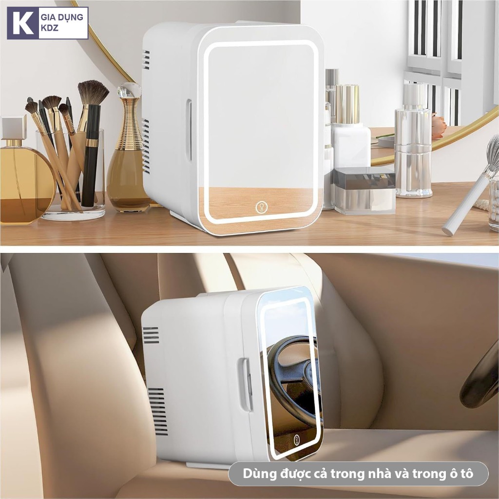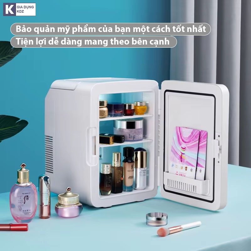 Tủ Lạnh Mini 12L KDZ Đựng Mỹ Phẩm Trữ Đồ Uống Trên Ô Tô, Tủ Lạnh Mỹ Phẩm Có Gương Điều Chỉnh Nhiệt Độ Trữ Sữa Cho Bé