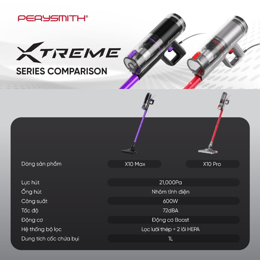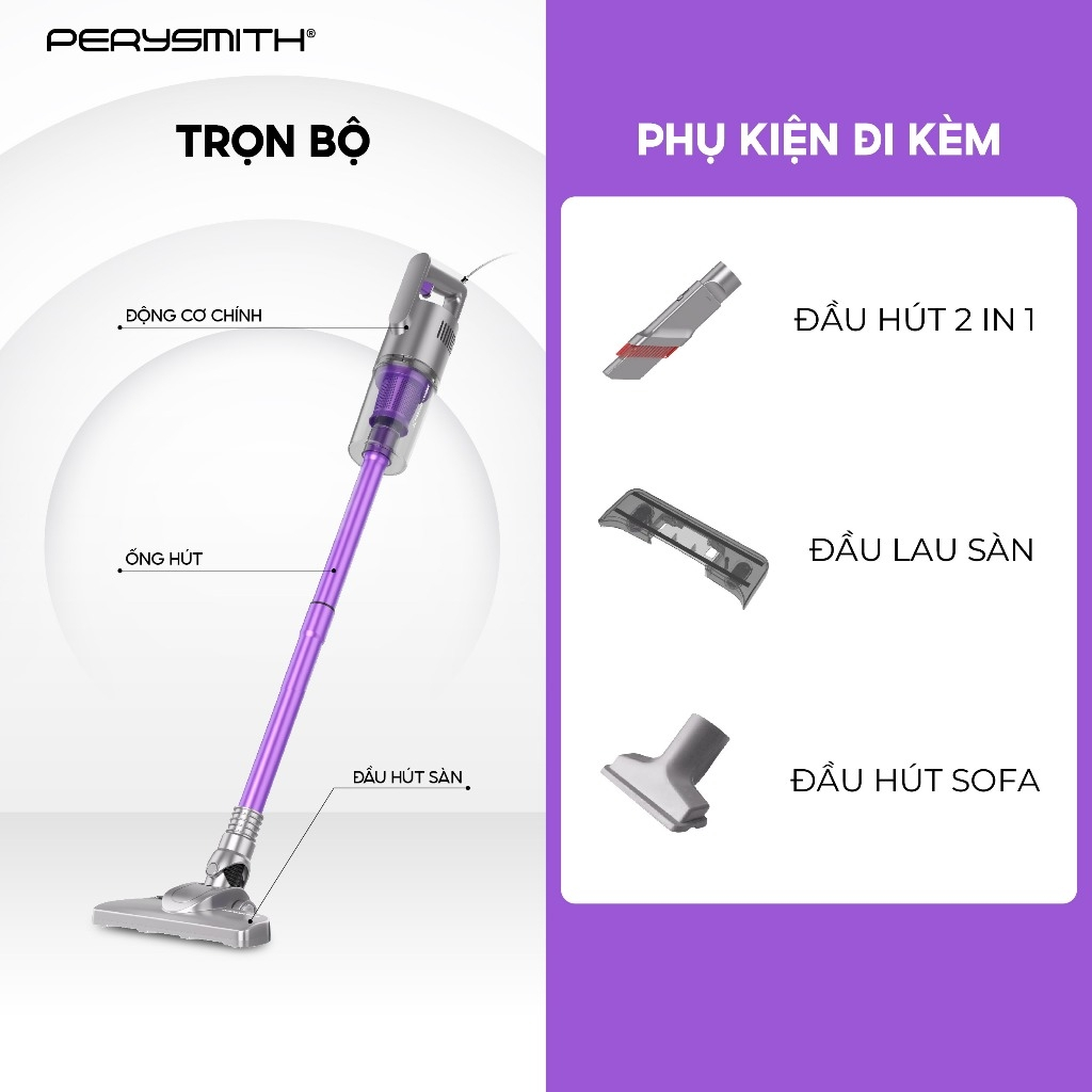 Máy Hút Bụi Có Dây PerySmith X10Pro Lực Hút Mạnh 21.000 Pa, Công Suất 600W, Gọn Nhẹ 1Kg