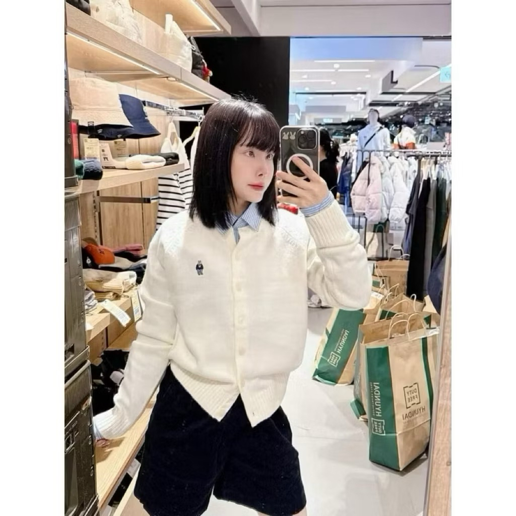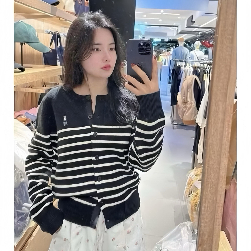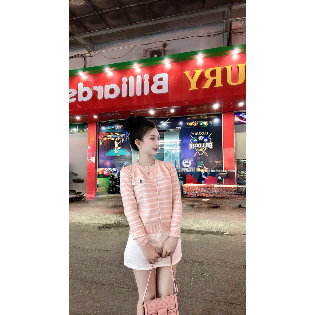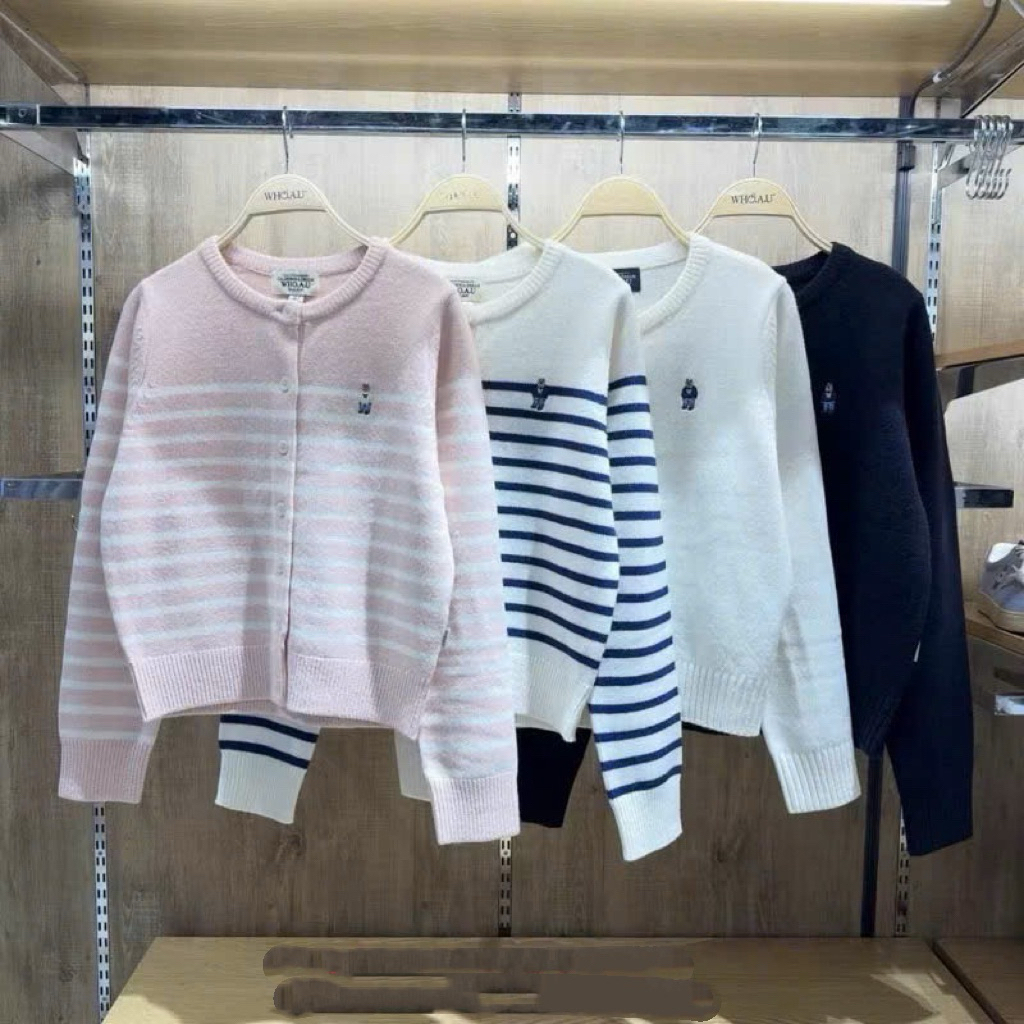 Áo len cardigan nữ dáng vừa thêu gấu sọc ngang dễ thương chất len dày mịn giữ ấm thu đông đủ 6 màu