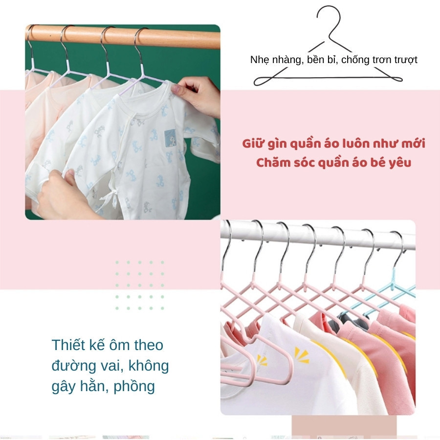 [MÃ ANCMAR GIẢM 15%] Set 30 Hoặc 50 Móc Phơi Quần Áo Cho Bé Inox Bọc Nhựa Màu Pastel Chống Trơn Trượt